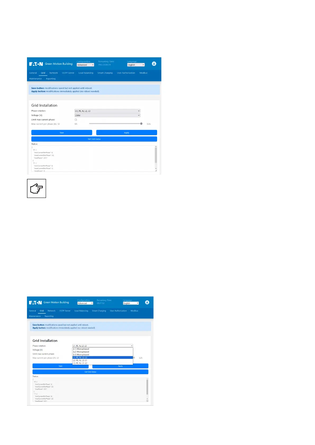 default setting for the maximum current is 32 A. See Section 6.4 for instructions on how to limit the maximum