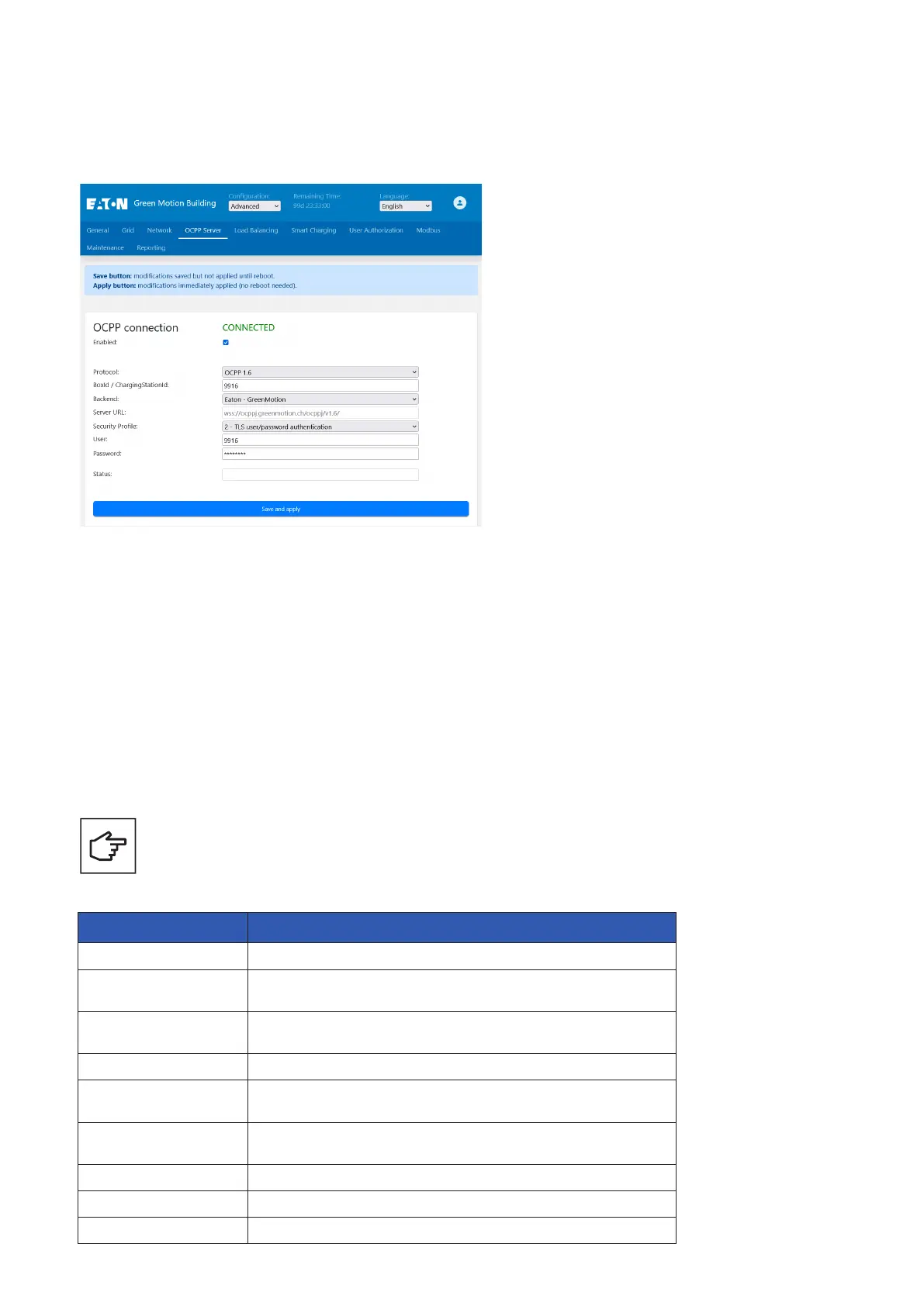Figure 40. Configuration page – OCPP