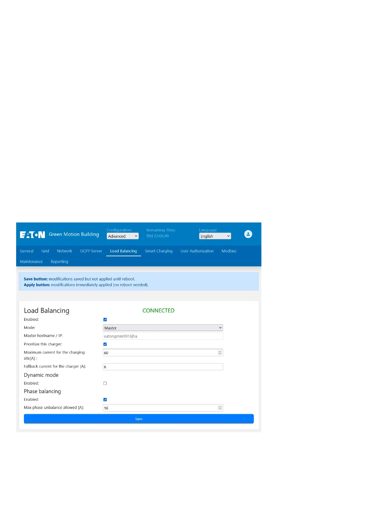 higher value to allow the Node to apply that max. current in case of temporary disconnection from the Master or the OCPP