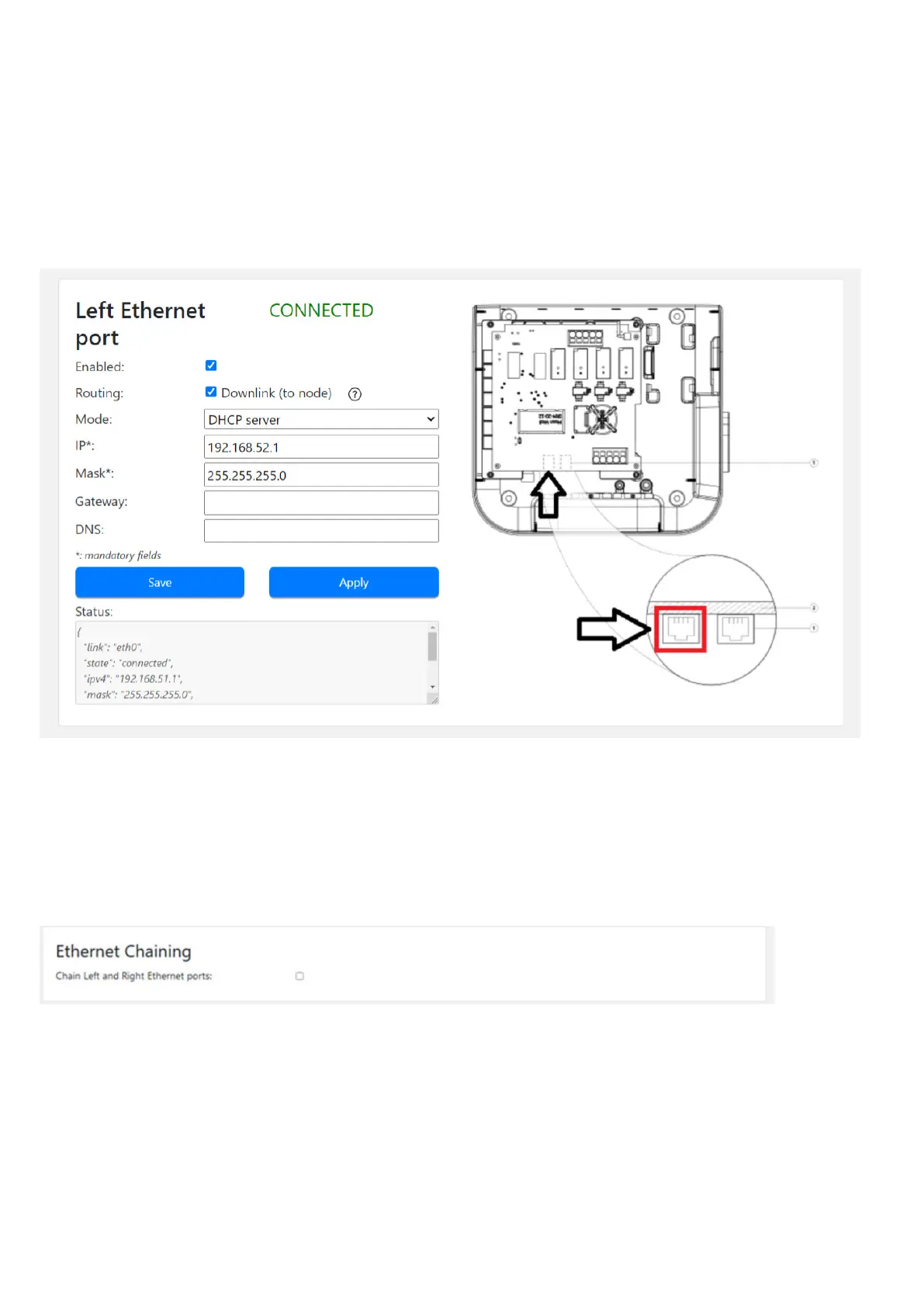 Step 1. On the configuration page, go to the “Ethernet chaining” section and check the “Chain Left and