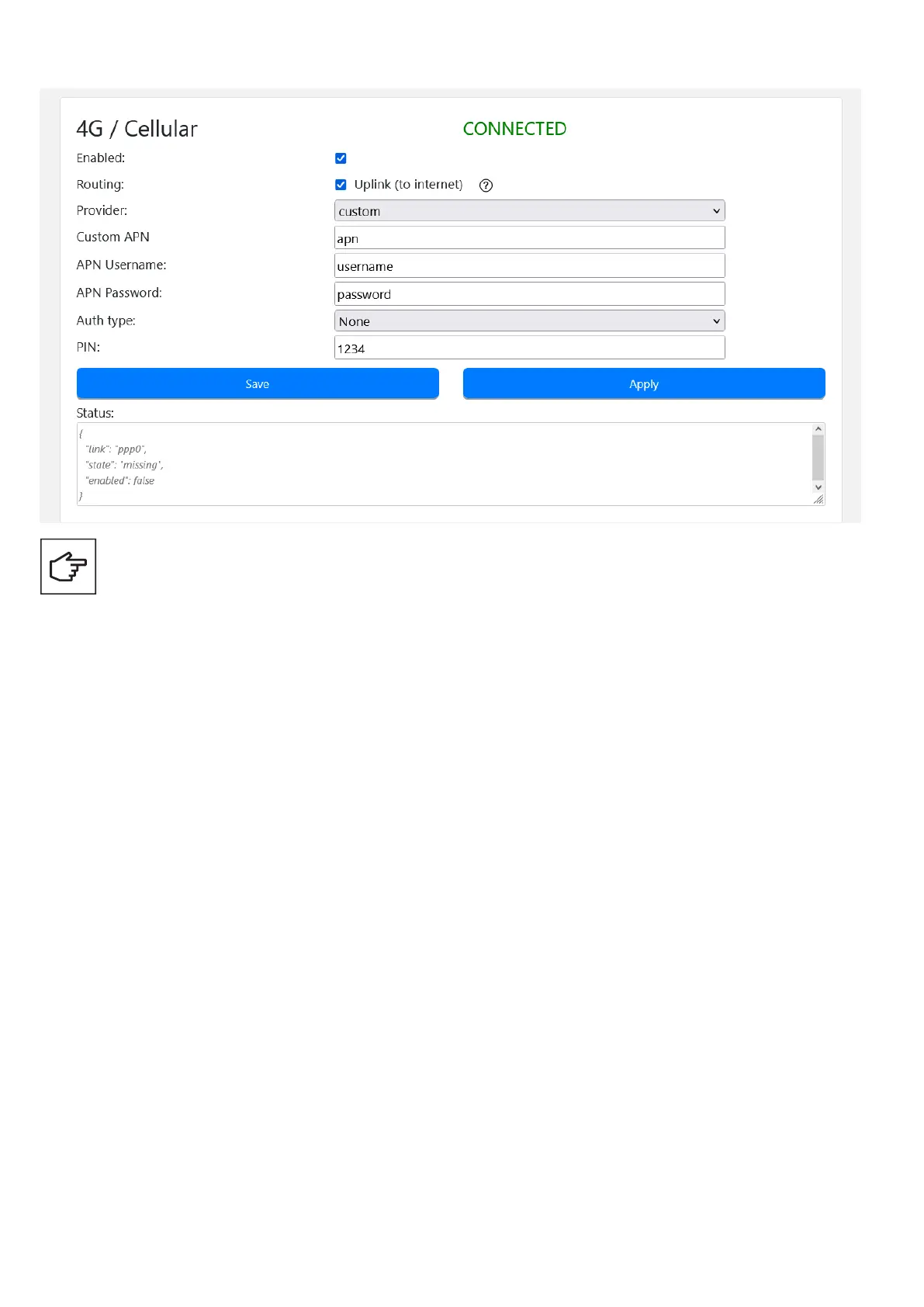 Figure 71. 4G LTE connection settings for the Master EV Charger using a custom SIM card provider