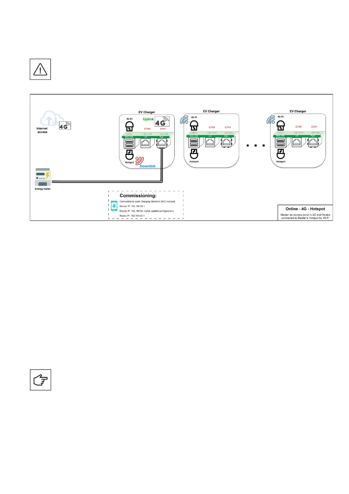 Configuring the Master EV Charger includes setting up 4G LTE, Wi-Fi hotspot, and ETH1 port parameters. A qualified