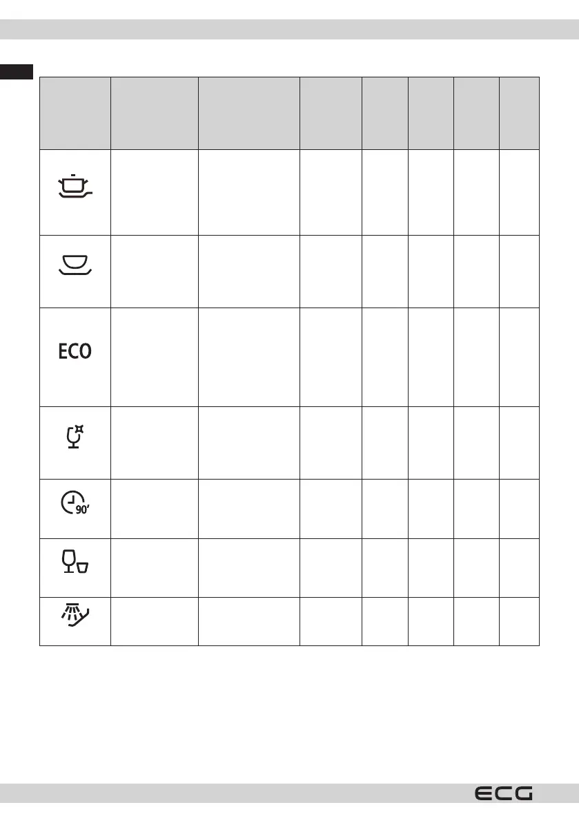 * The ECO programme is suitable for cleaning normally soiled dishes, is the most ecient programme for