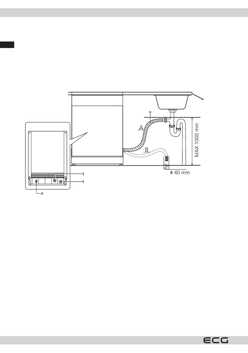 Der Anschluss des Ablaufschlauches muss maximal 1000 mm über dem Boden der Spülmaschine liegen.