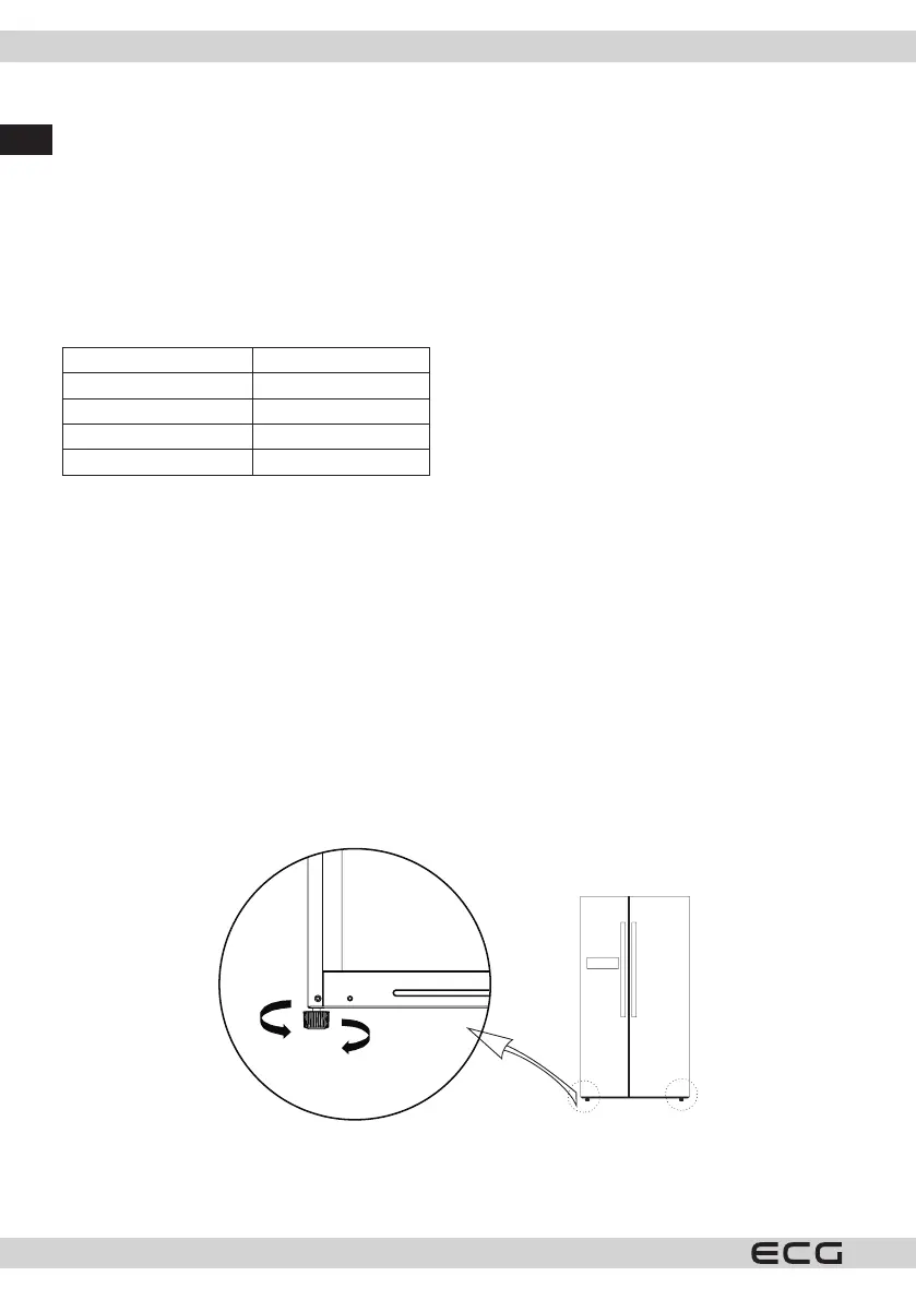 • Před vyrovnáním polohy se ujistěte, že chladnička je odpojená od napájecí sítě. Přečtěte si bezpečnostní