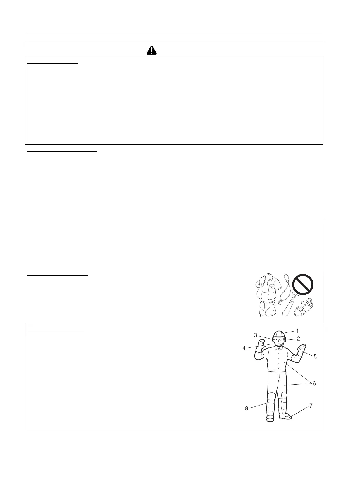 Do not wear ties, jewellery, or loose, dangling clothing which could be caught in the