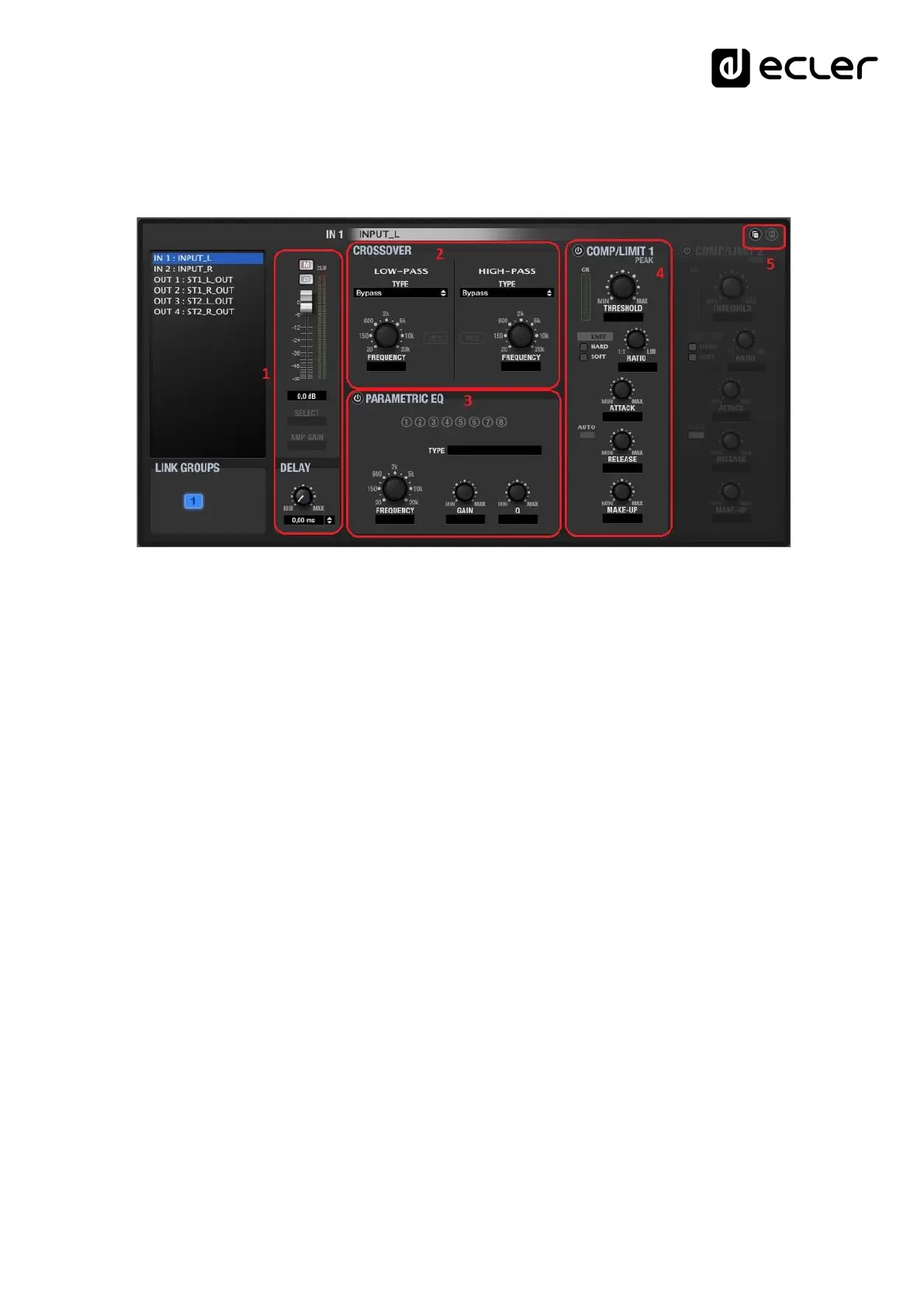4. COMPRESSOR/LIMITER, or dynamics processor of the input channel with signal-