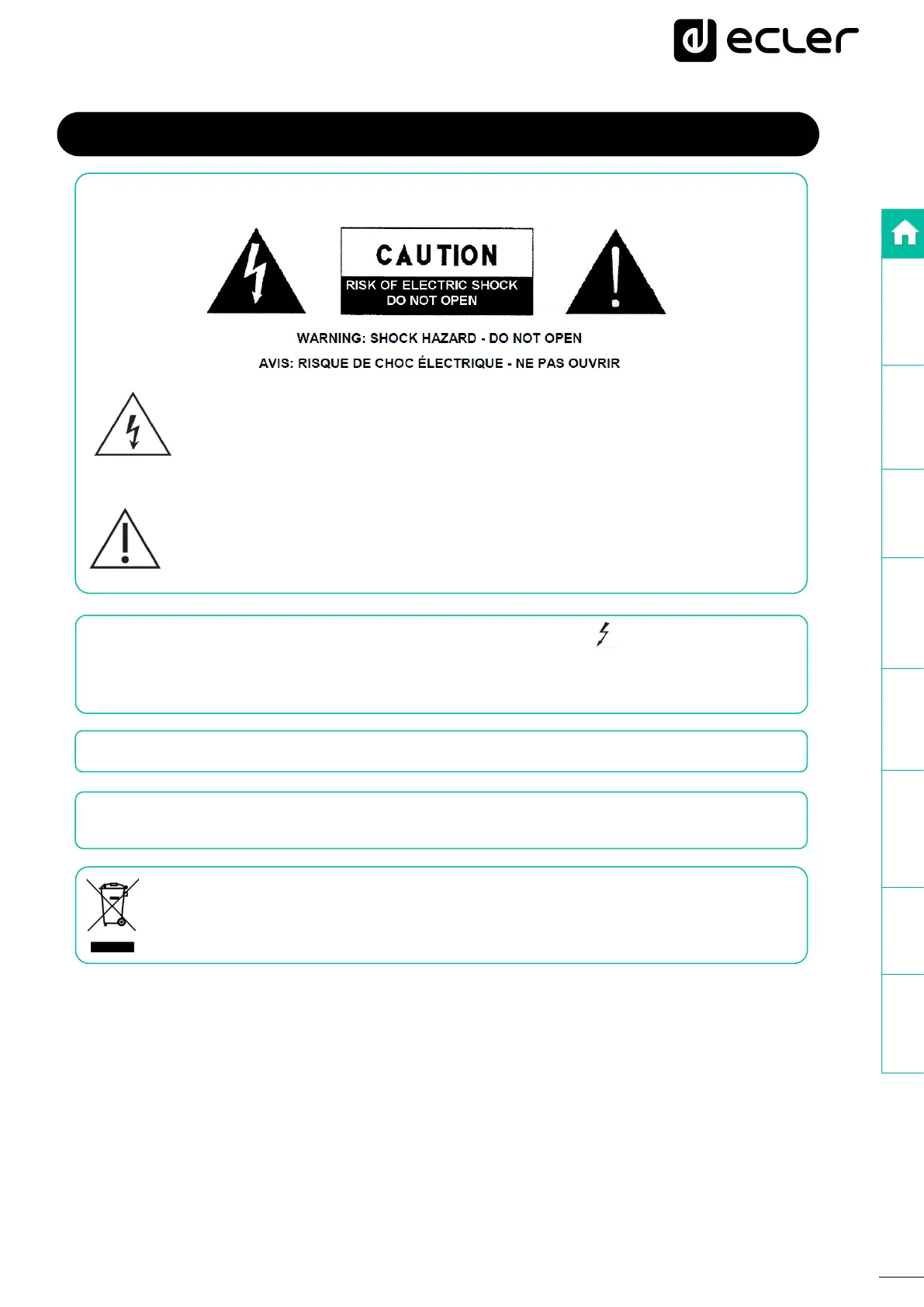 WARNING: Ecler products have a long lifetime of more than 10 years. This product