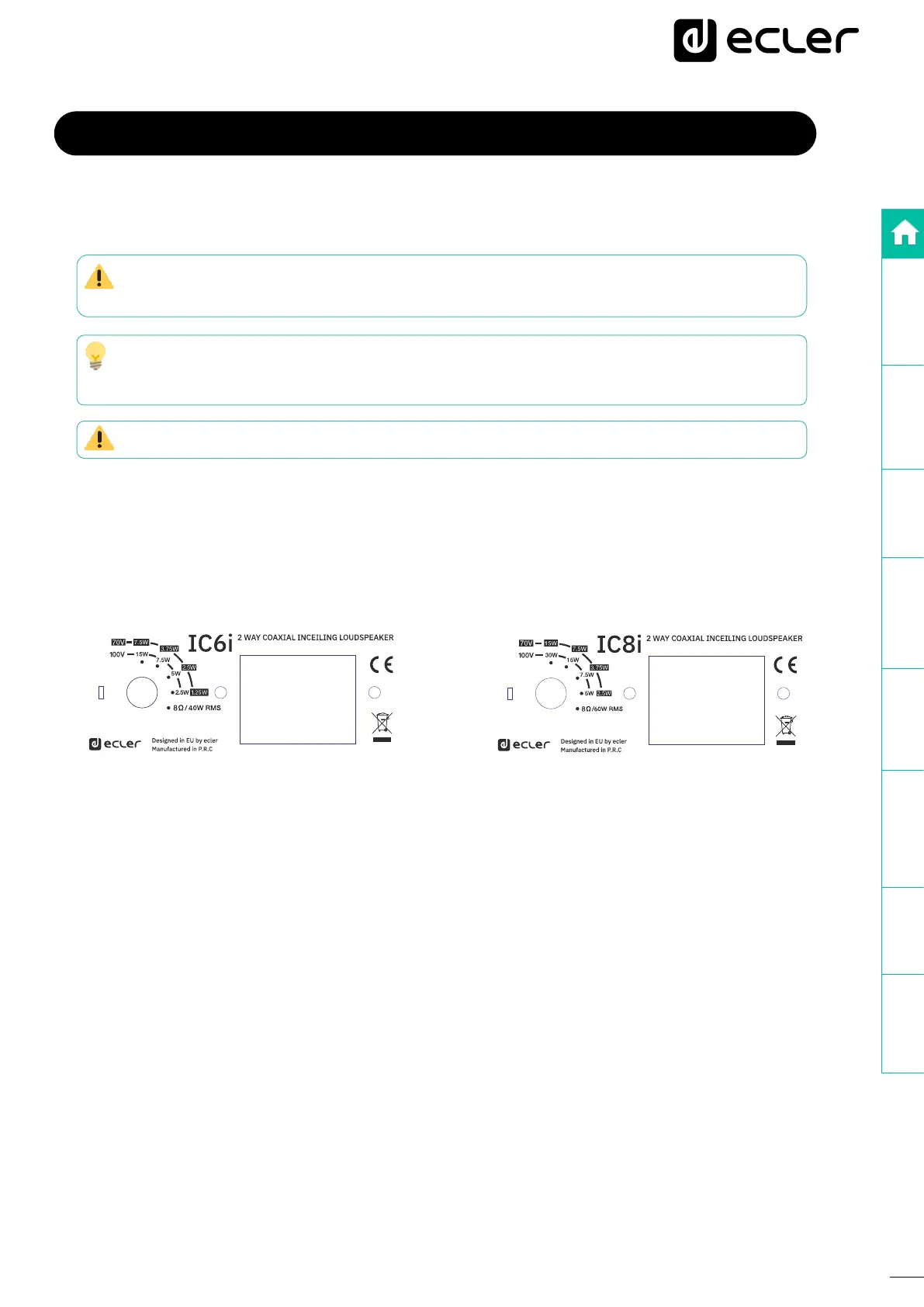 Bekijk gratis de handleiding van Ecler IC6i, stel vragen en lees de antwoorden op veelvoorkomende problemen, of gebruik onze assistent om sneller informatie in de handleiding te vinden of uitleg te krijgen over specifieke functies.