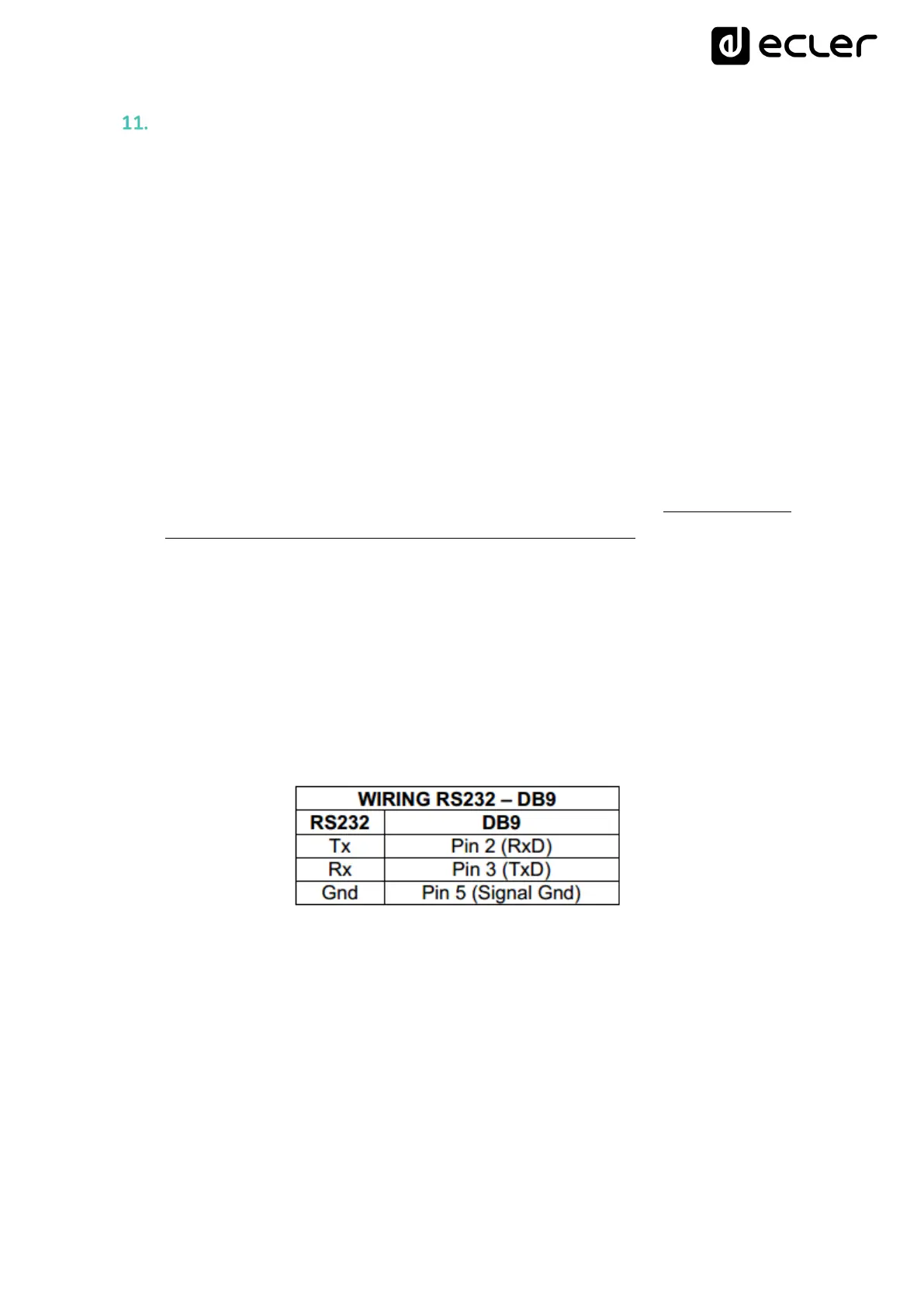 In case the Ecler device has an Euroblock connector for the RS-232 interface, the serial
