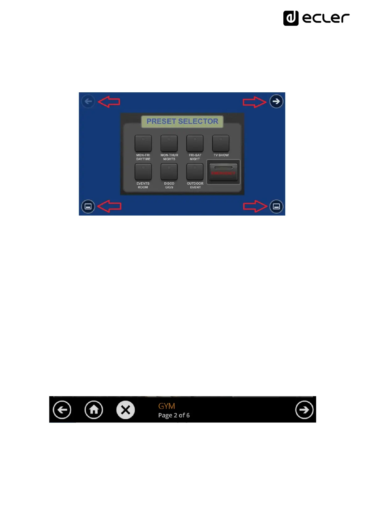can scroll the panel pages (left and right) and the bottom corner buttons access