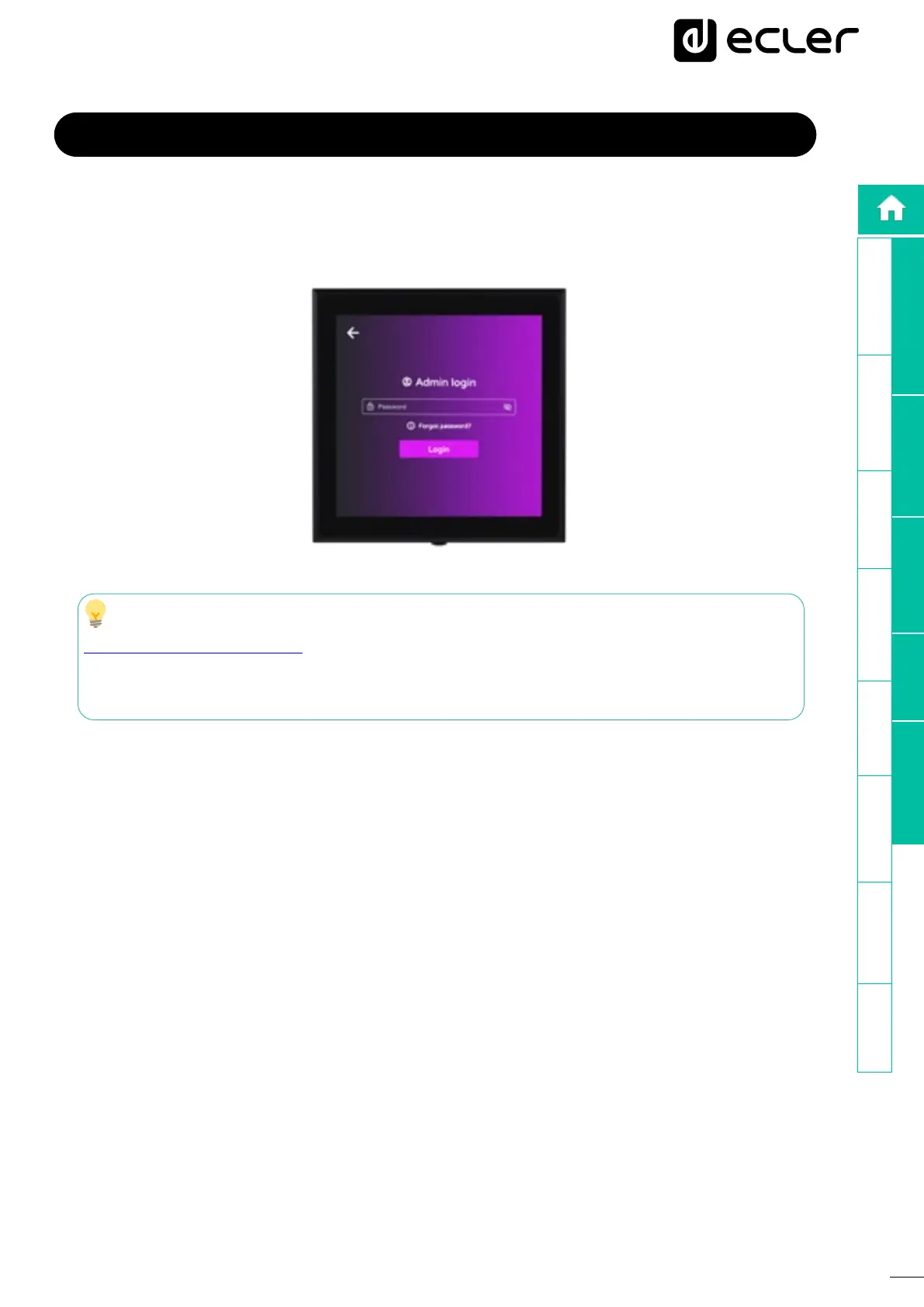 automatic screen switch-off and select the application to control the desired Ecler product