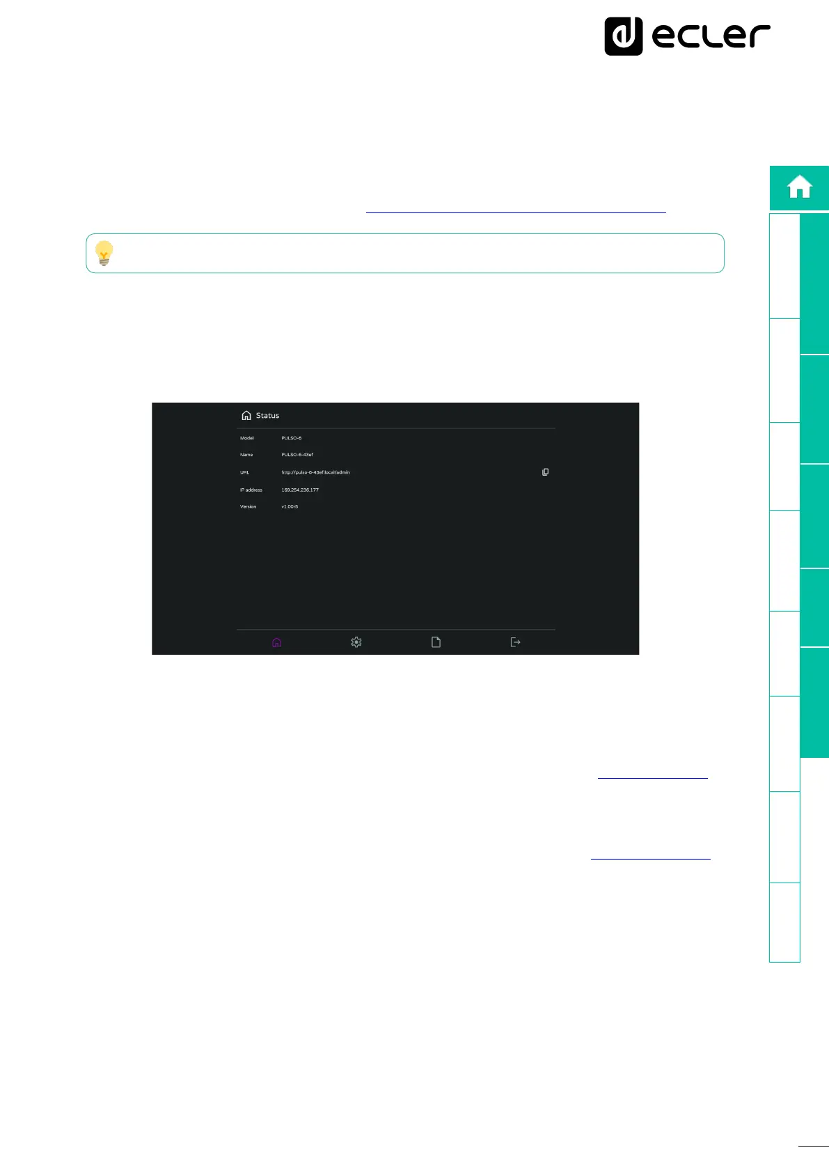 • IP address: indicates the device IP address that can be configured via Network Settings.
