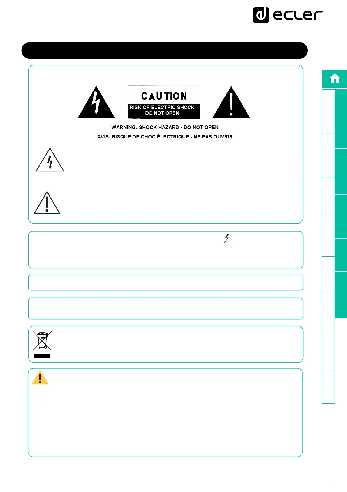 WARNING: Ecler products have a long lifetime of more than 10 years. This product