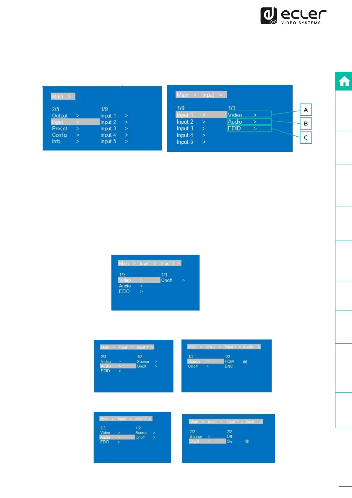 o Source: To choose HDMI input audio or ENC (Audio Insertion).