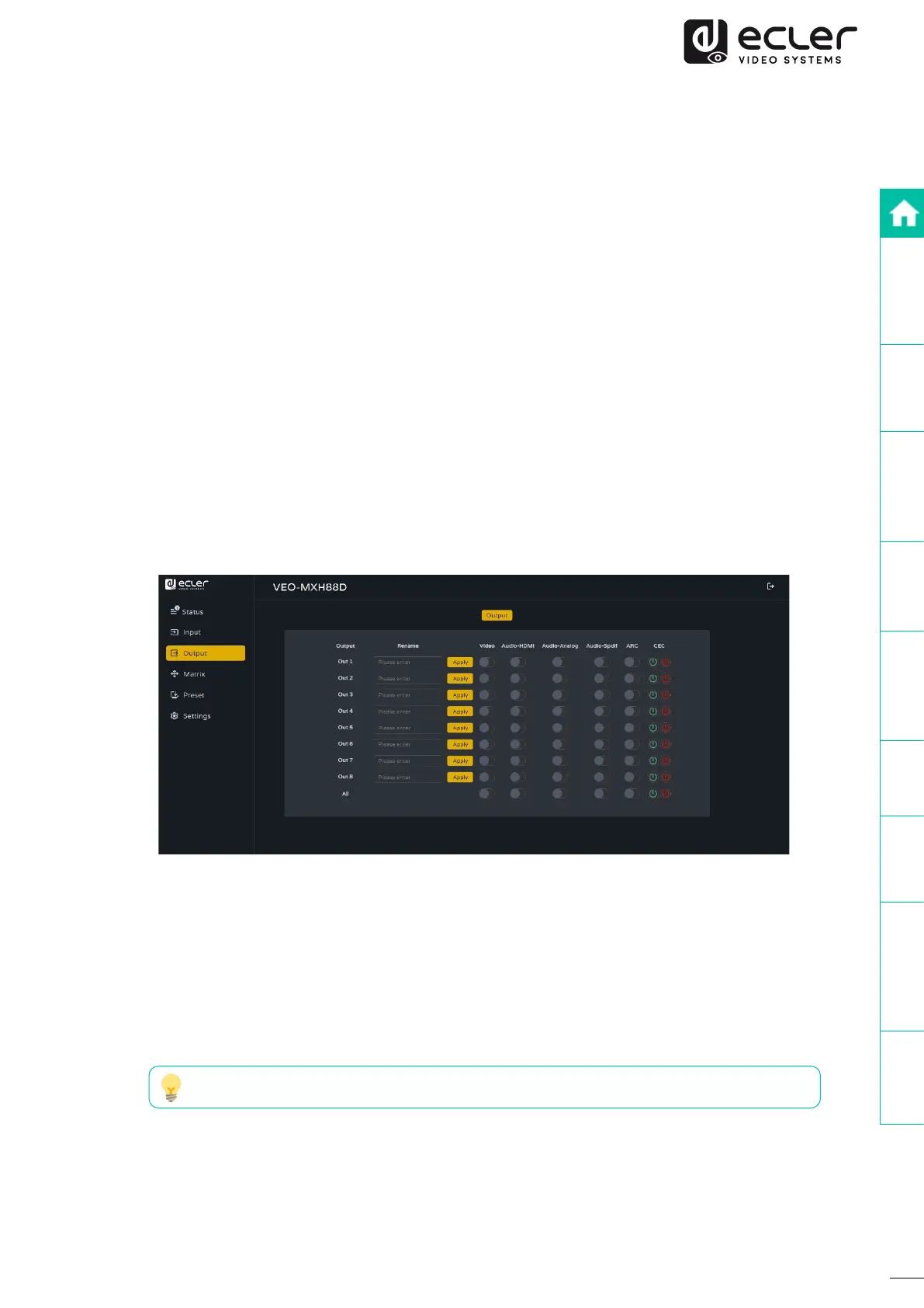 Bekijk gratis de handleiding van Ecler VEO-MXH88D, stel vragen en lees de antwoorden op veelvoorkomende problemen, of gebruik onze assistent om sneller informatie in de handleiding te vinden of uitleg te krijgen over specifieke functies.