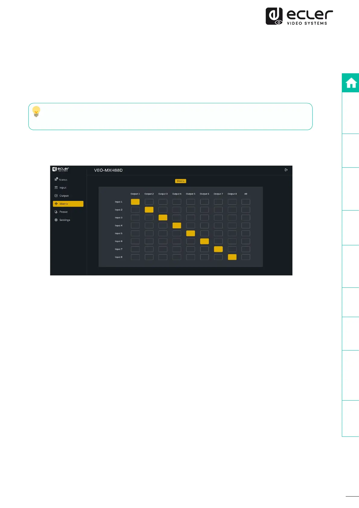 Bekijk gratis de handleiding van Ecler VEO-MXH88D, stel vragen en lees de antwoorden op veelvoorkomende problemen, of gebruik onze assistent om sneller informatie in de handleiding te vinden of uitleg te krijgen over specifieke functies.
