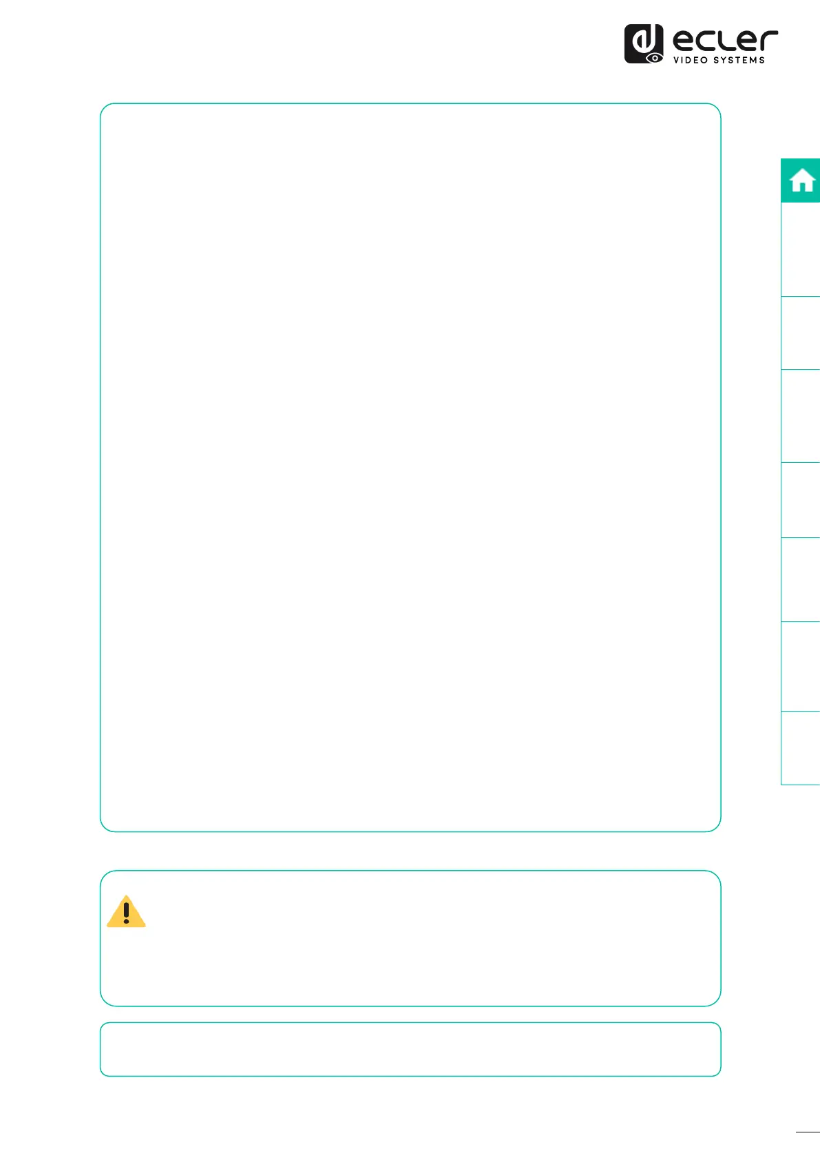 Bekijk gratis de handleiding van Ecler VEO-XRI1CG2, stel vragen en lees de antwoorden op veelvoorkomende problemen, of gebruik onze assistent om sneller informatie in de handleiding te vinden of uitleg te krijgen over specifieke functies.