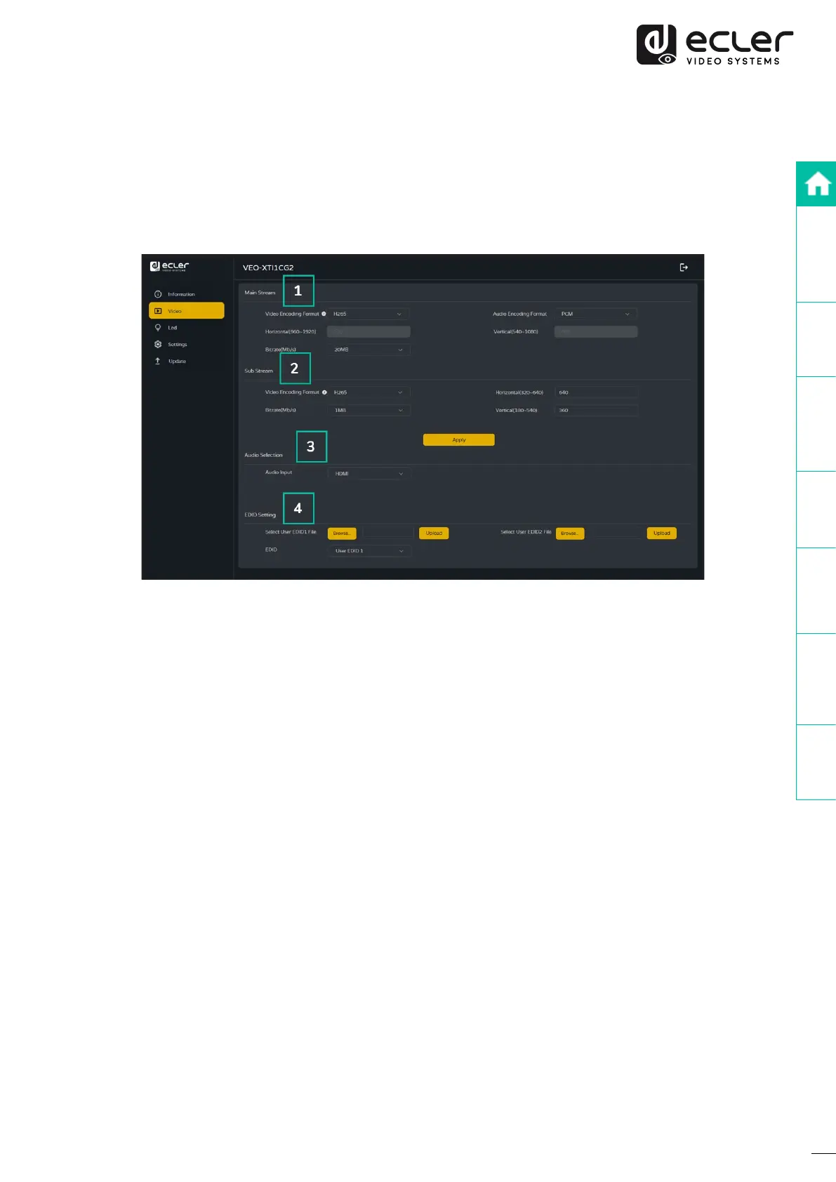 • Video Encoding Format: the user can select H.265 and H.264 video codec for the