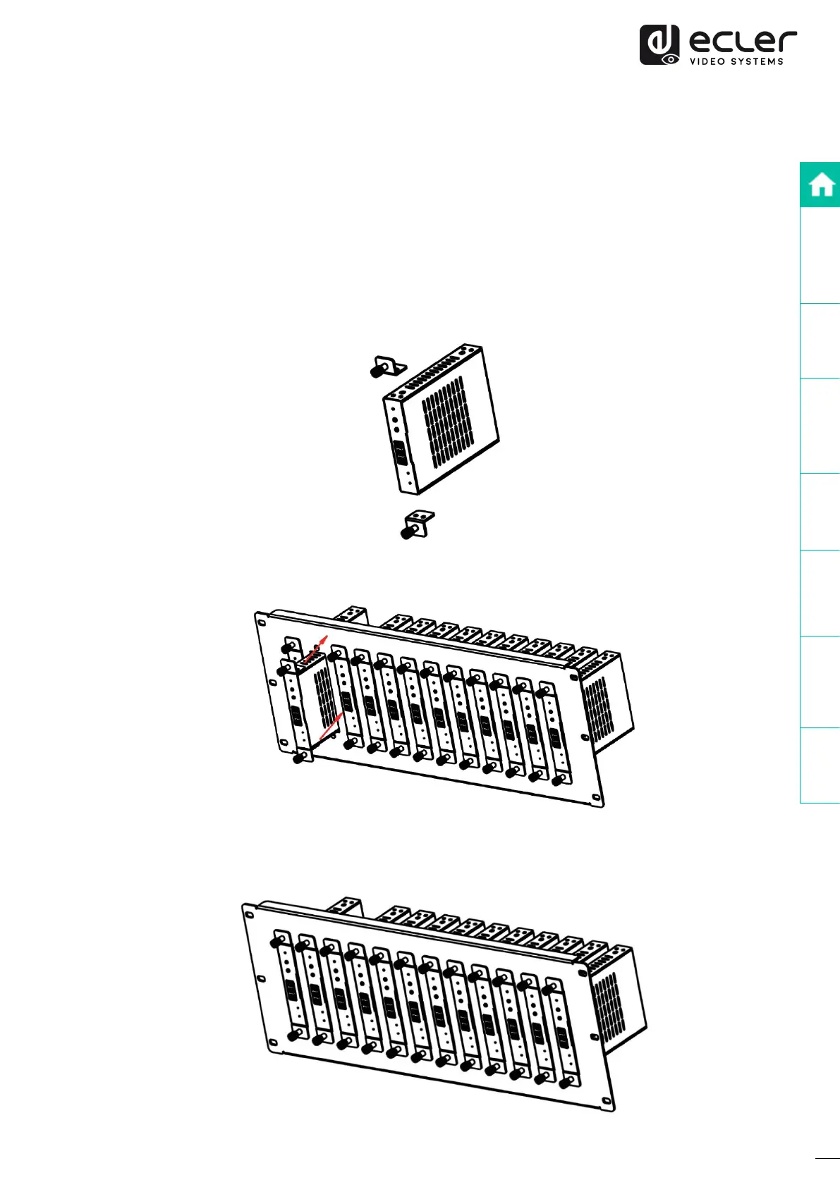 2. Insert the product with mounting ears into a 3U rack (up to 12 units can be installed