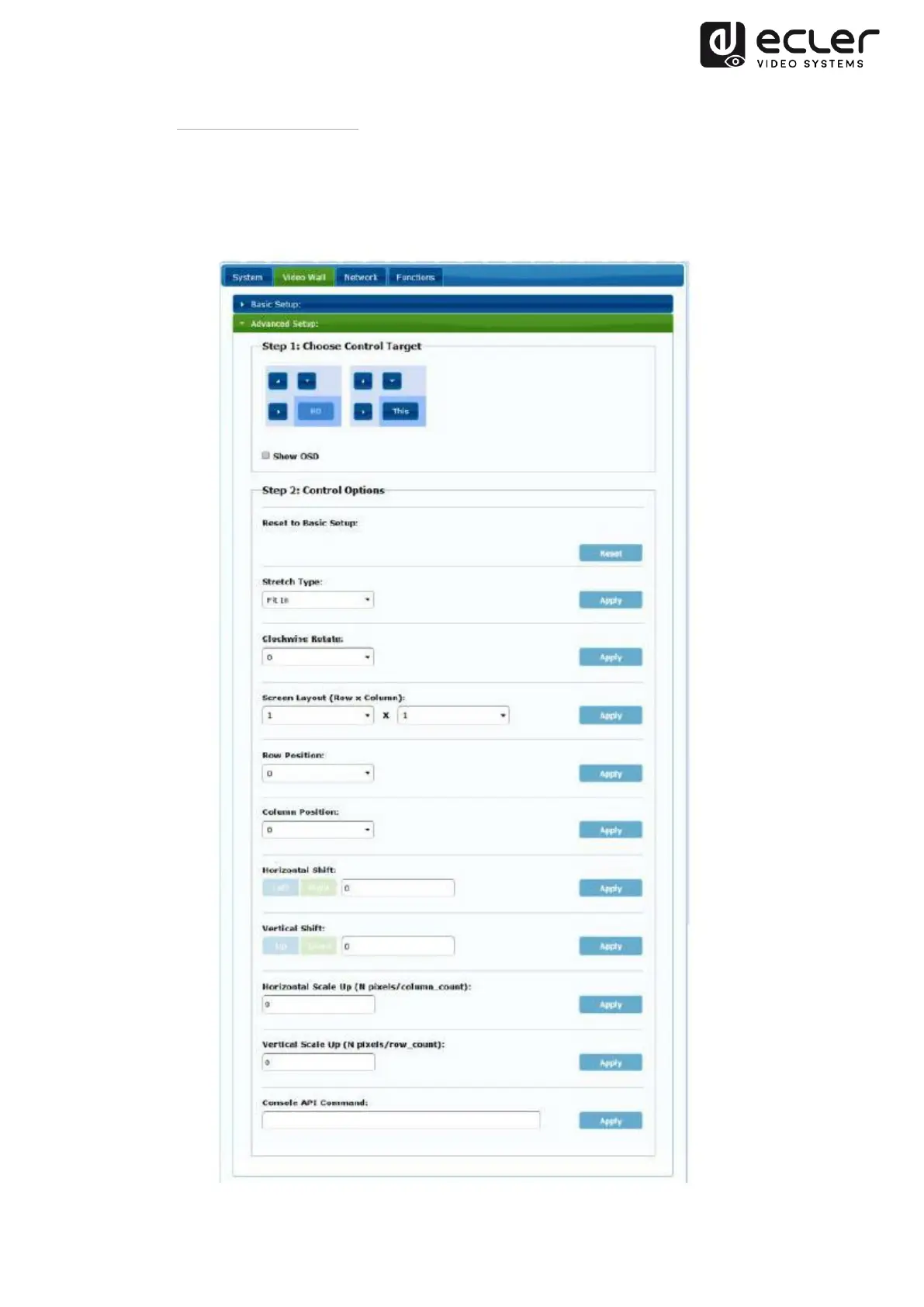 complete the "Basic Setup", defining and confirming the layout and size of the video