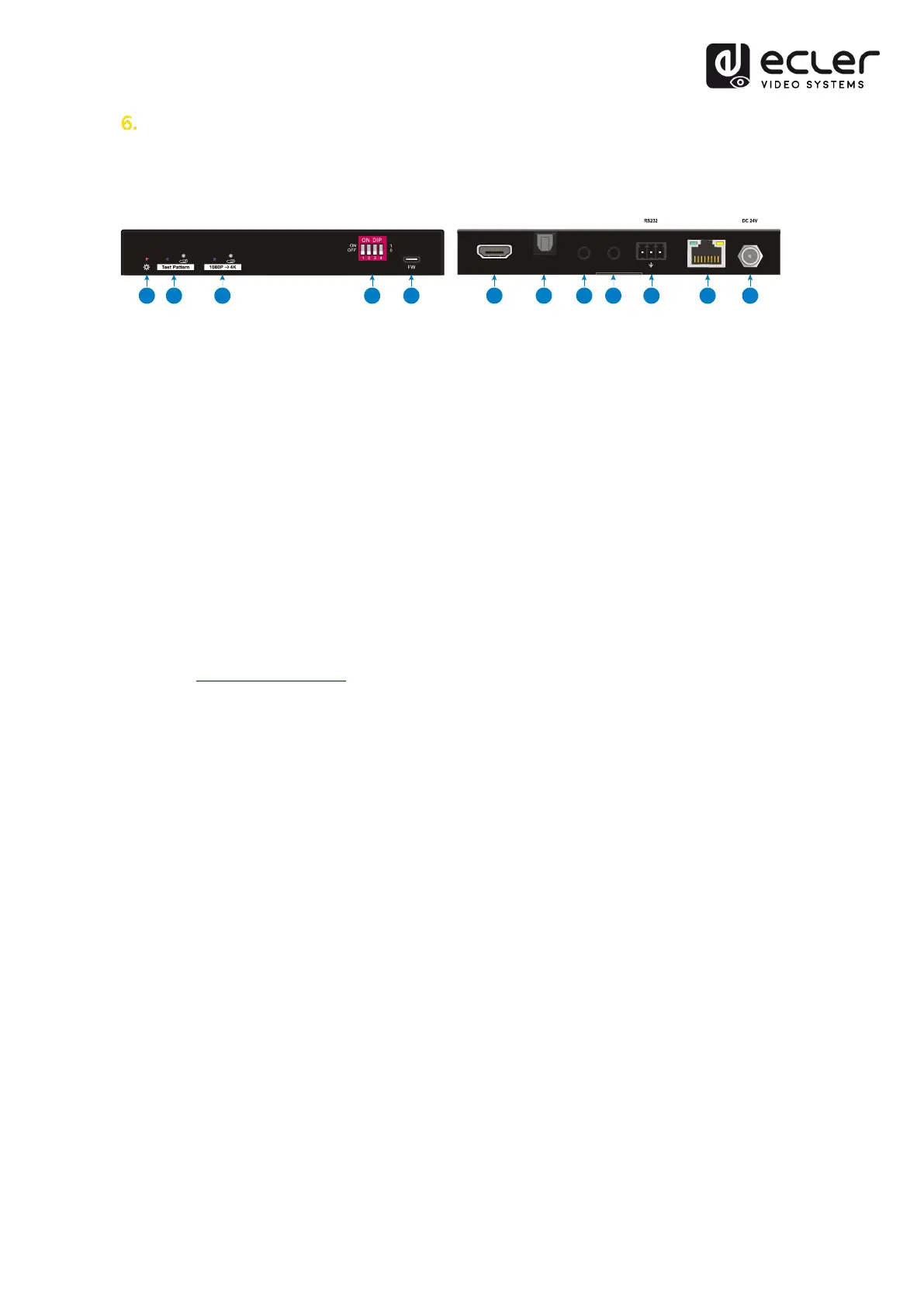 6. HDMI In: Type-A female HDMI input port to connect a HDMI source.