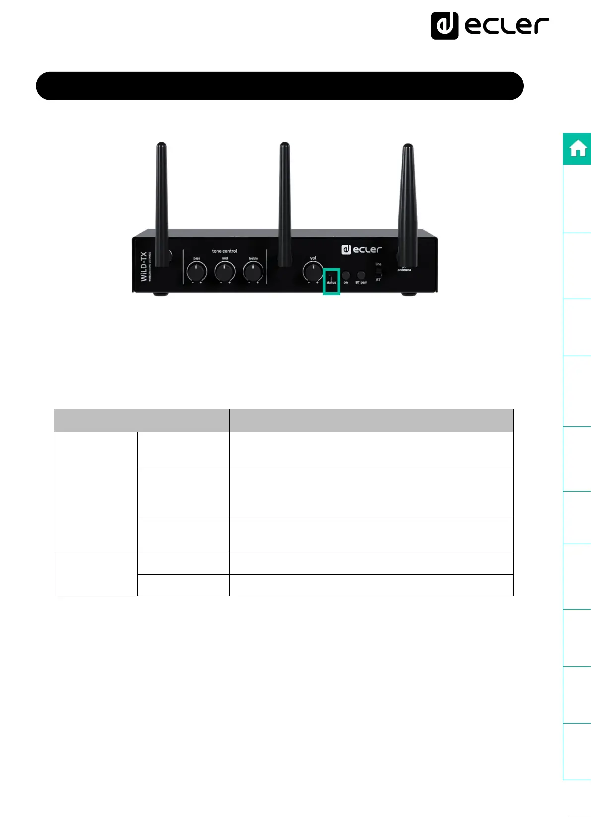 Bekijk gratis de handleiding van Ecler WiLD-TX, stel vragen en lees de antwoorden op veelvoorkomende problemen, of gebruik onze assistent om sneller informatie in de handleiding te vinden of uitleg te krijgen over specifieke functies.
