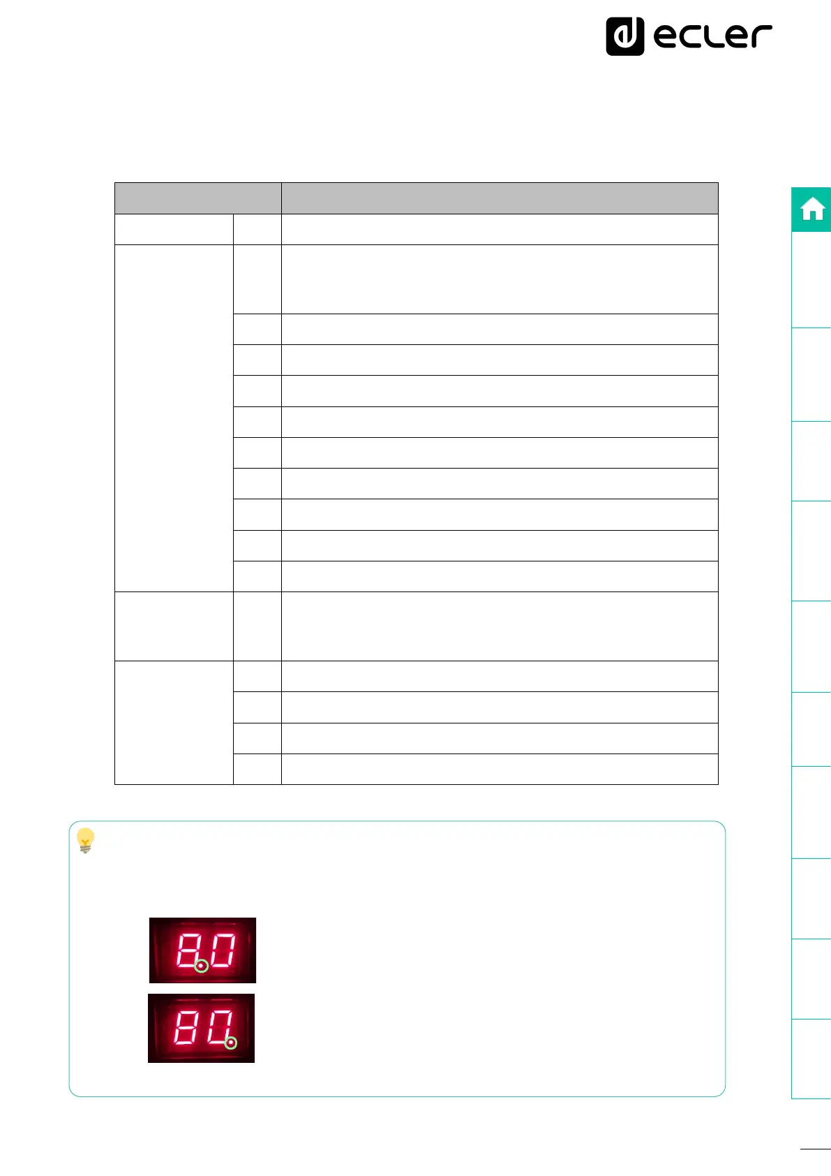Volume level. Adjustable from 00 to 99 with +/- buttons