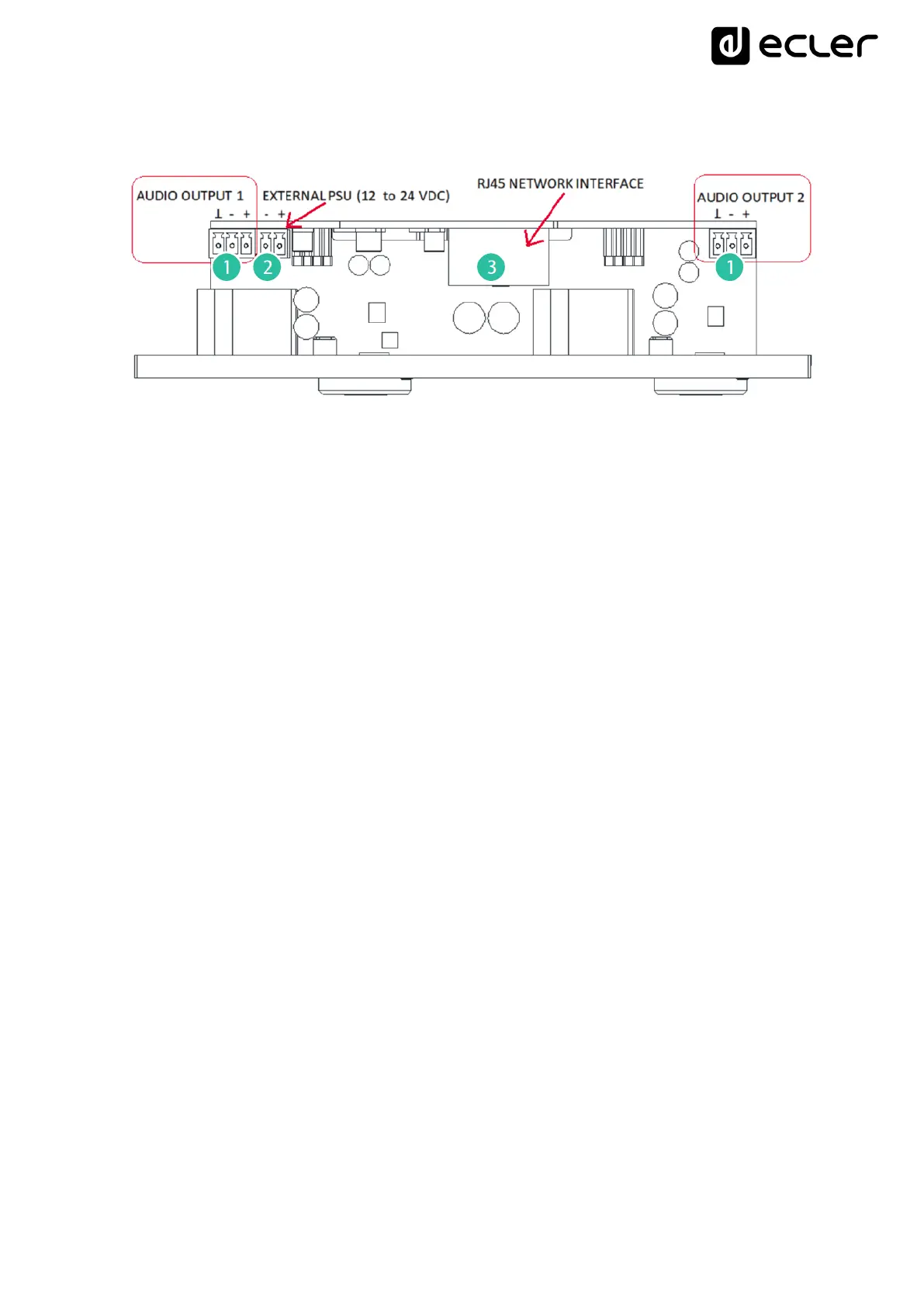 1. OUTPUT 1 and 2 Euroblock connectors (analogue outputs)