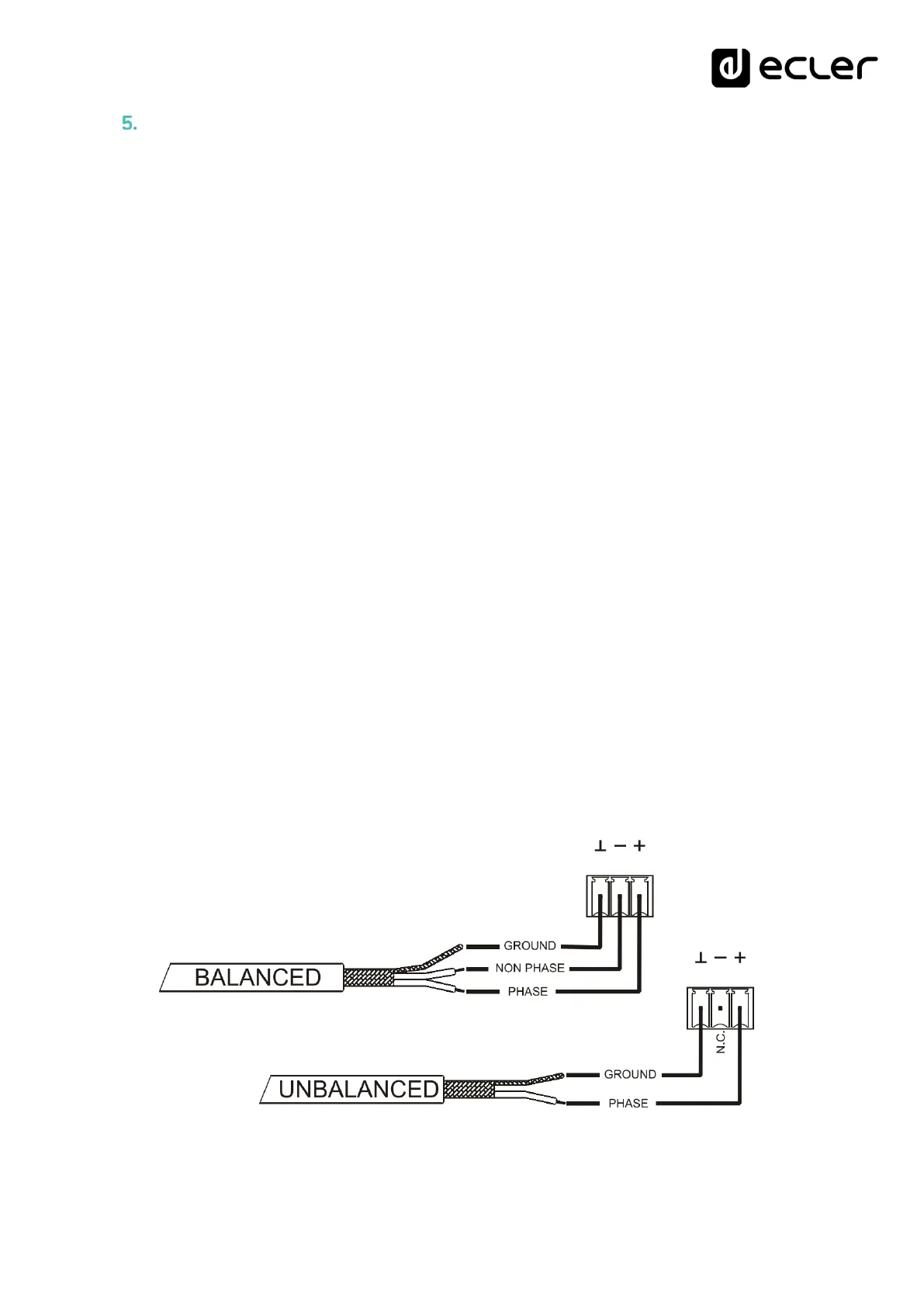 When connecting an output channel to an amplifier or device with an unbalanced audio
