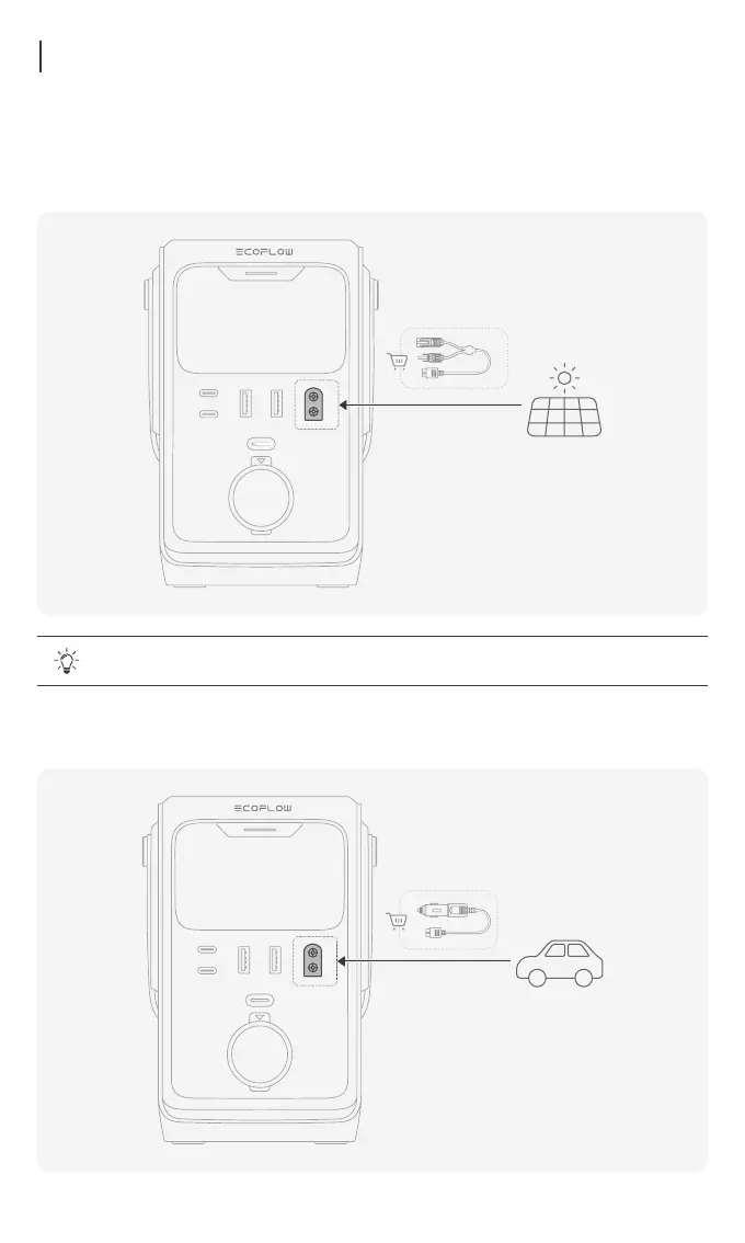 Подключите входной разъем для зарядки от солнечной панели/автомобиля к автомо-