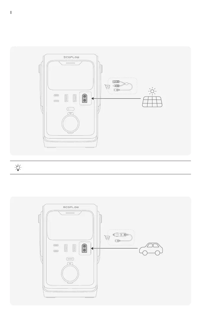 Pomocí kabelu pro nabíjení z vozidla připojte solární/automobilový vstupní port k 12V autozá-