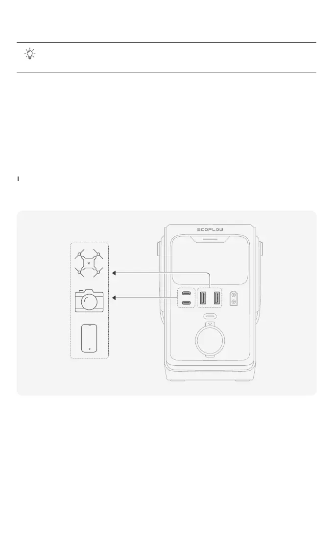 1. Sluit een apparaat met een laag vermogen aan op de USB-A-uitgangen.