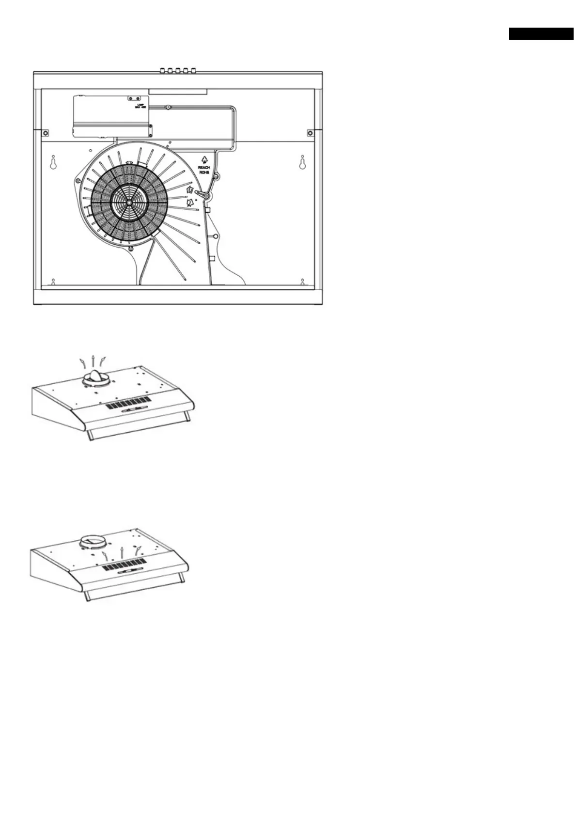 Inställning 2: Vrid justeringsknappen till återcirkulation, montera kåpan till frånluftskanalen och öppna fläkten.