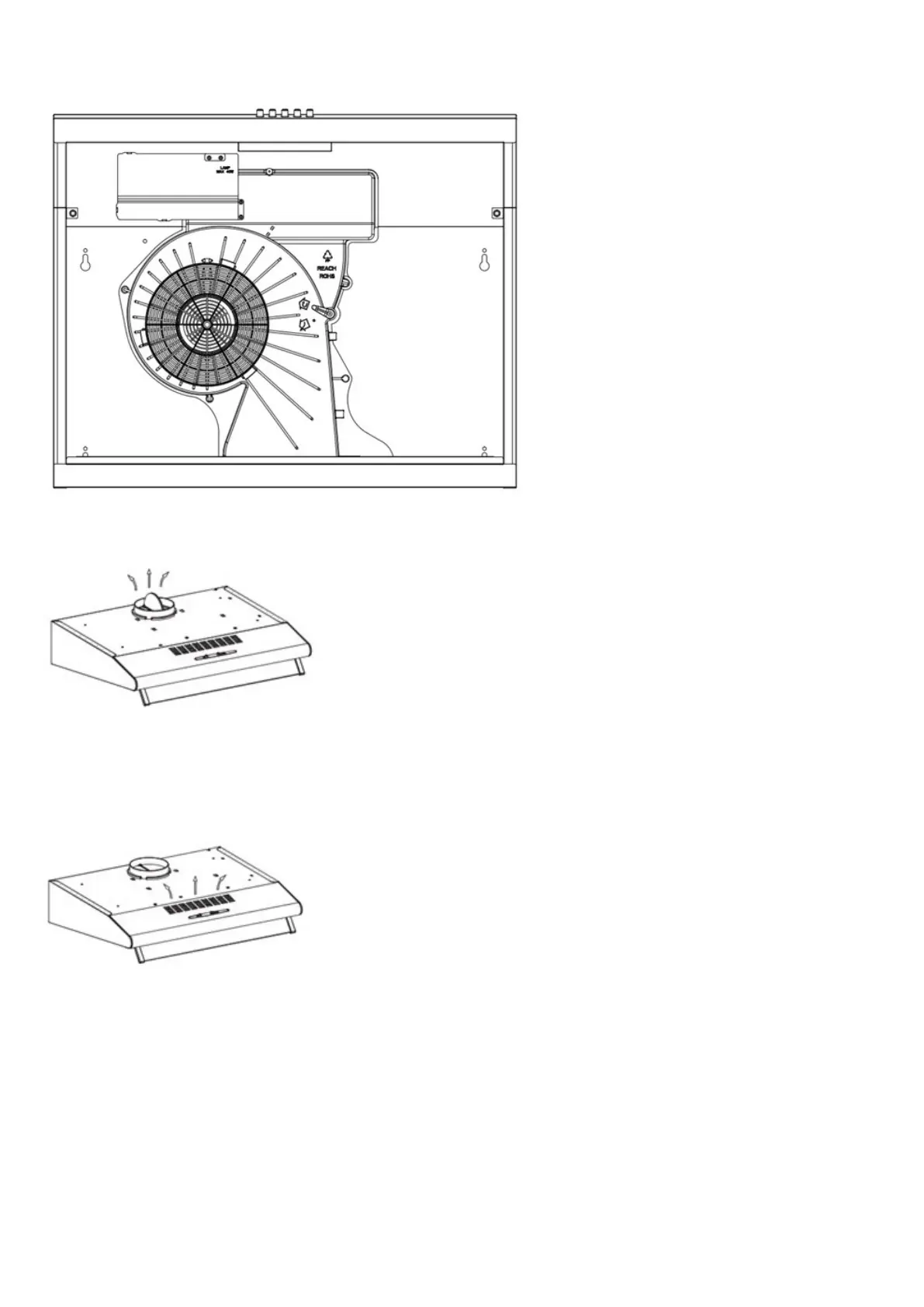 Innstilling 2: Drei justeringsknappen til RESIRKULASJON, monter dekselet til avtrekkskanalen, åpne