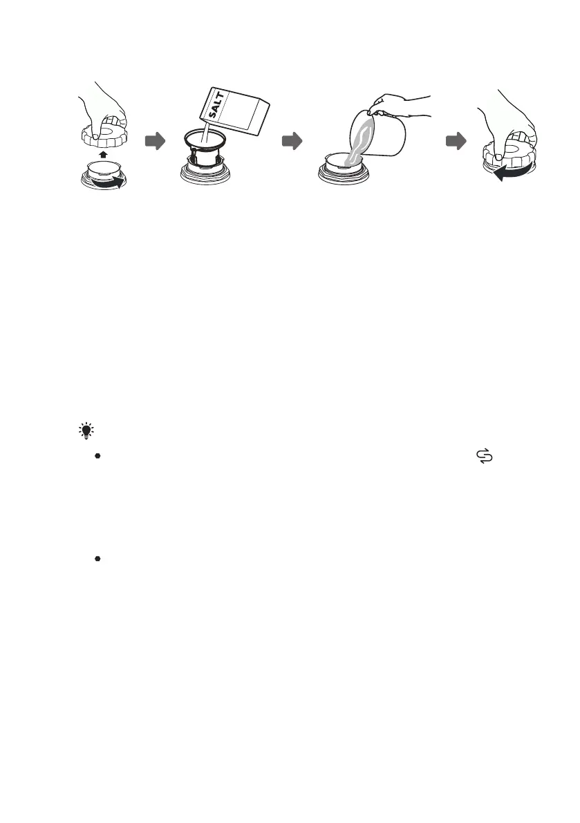 5. The salt warning light will stop being after the salt container has been filled with salt.