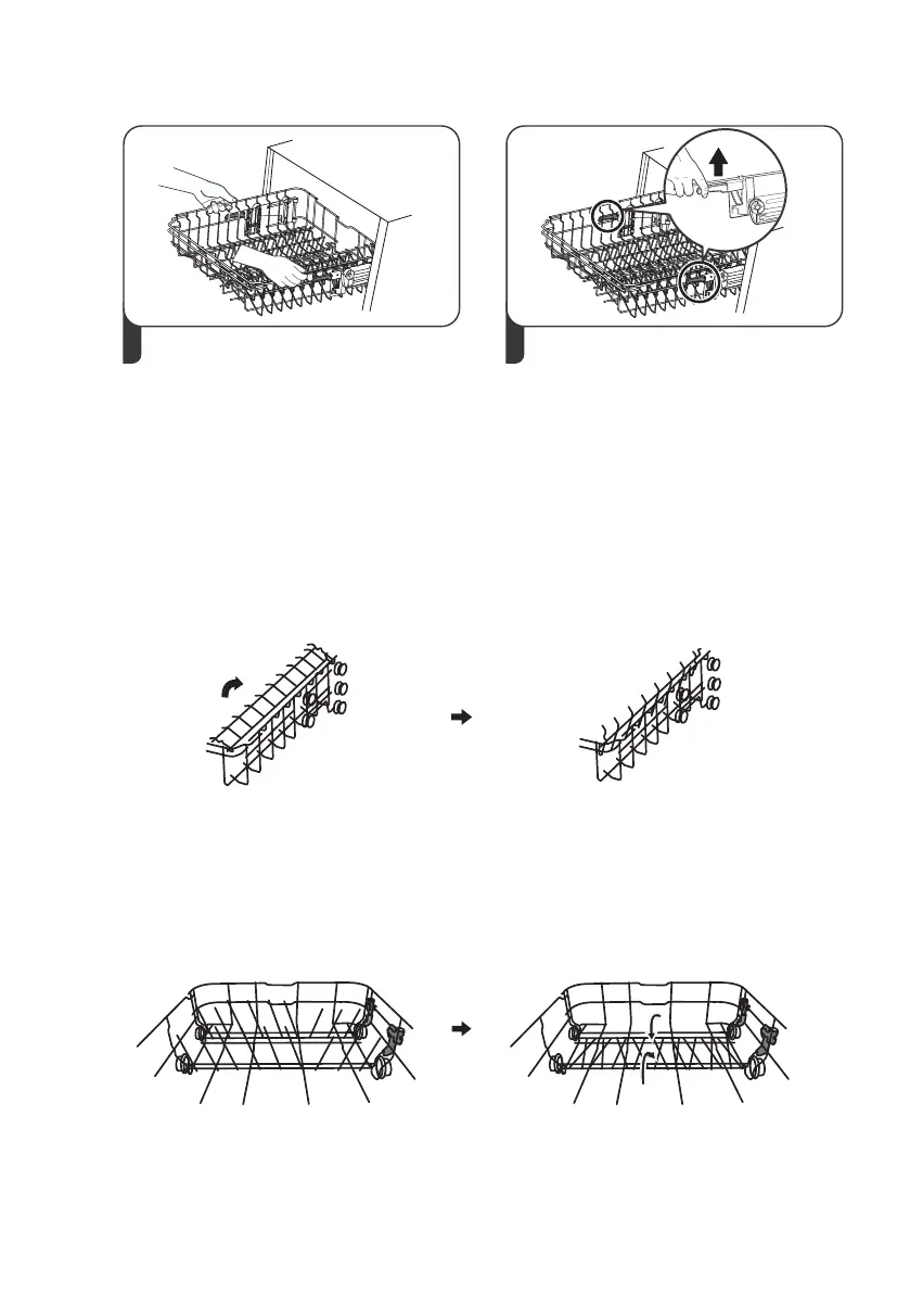 To make room for taller items in the upper basket, raise the cup rack upwards.