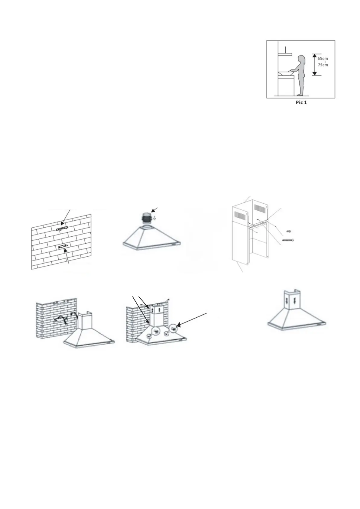 1. Fläkten bör placeras med ett avstånd på 65–75cm från köksbänken för bästa effekt. (Se