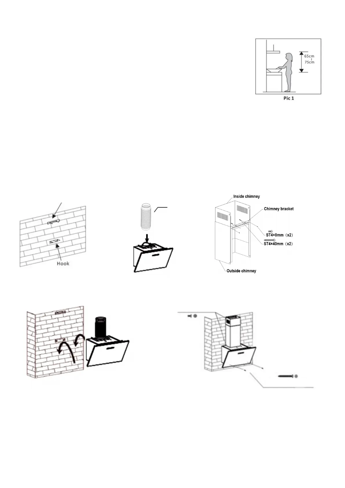1. Ventilatoren bør plasseres i en avstand på 65–75 cm fra kjøkkenbenken for best mulig effekt.