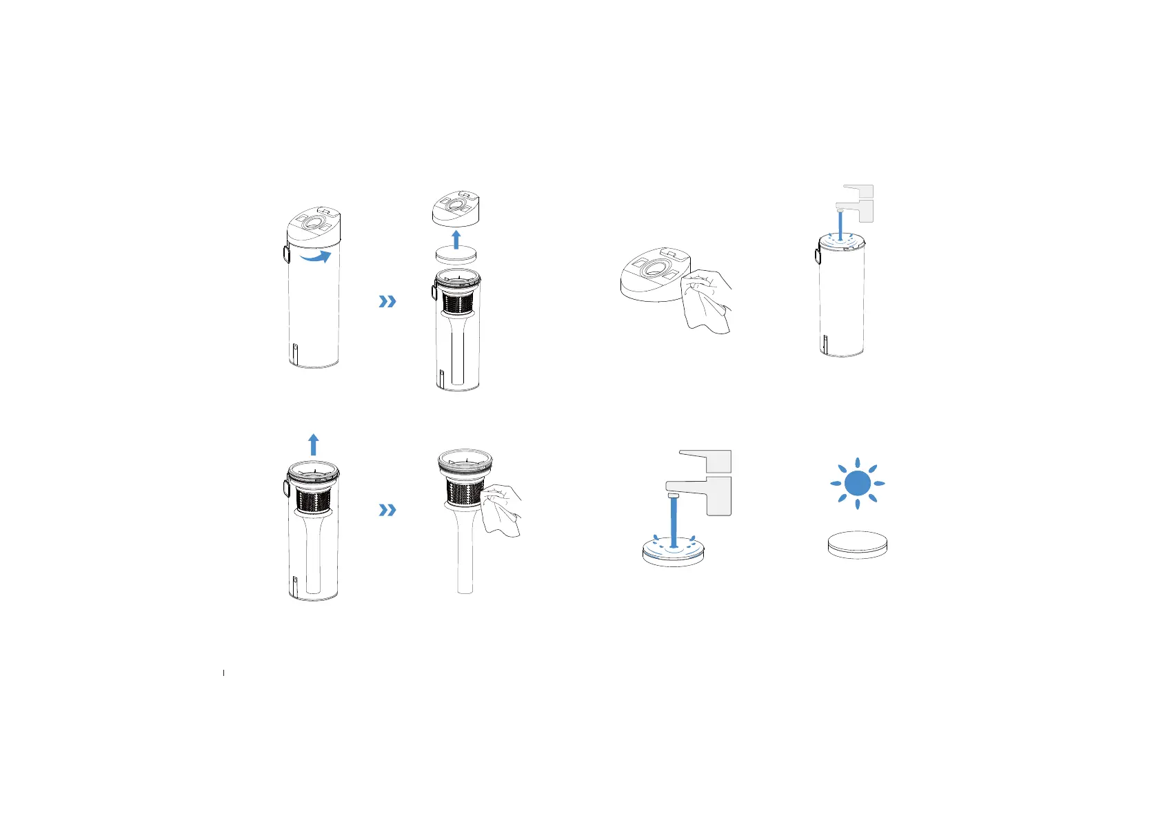 6. Rinse the dust bucket and sponge lter with water and dry them.