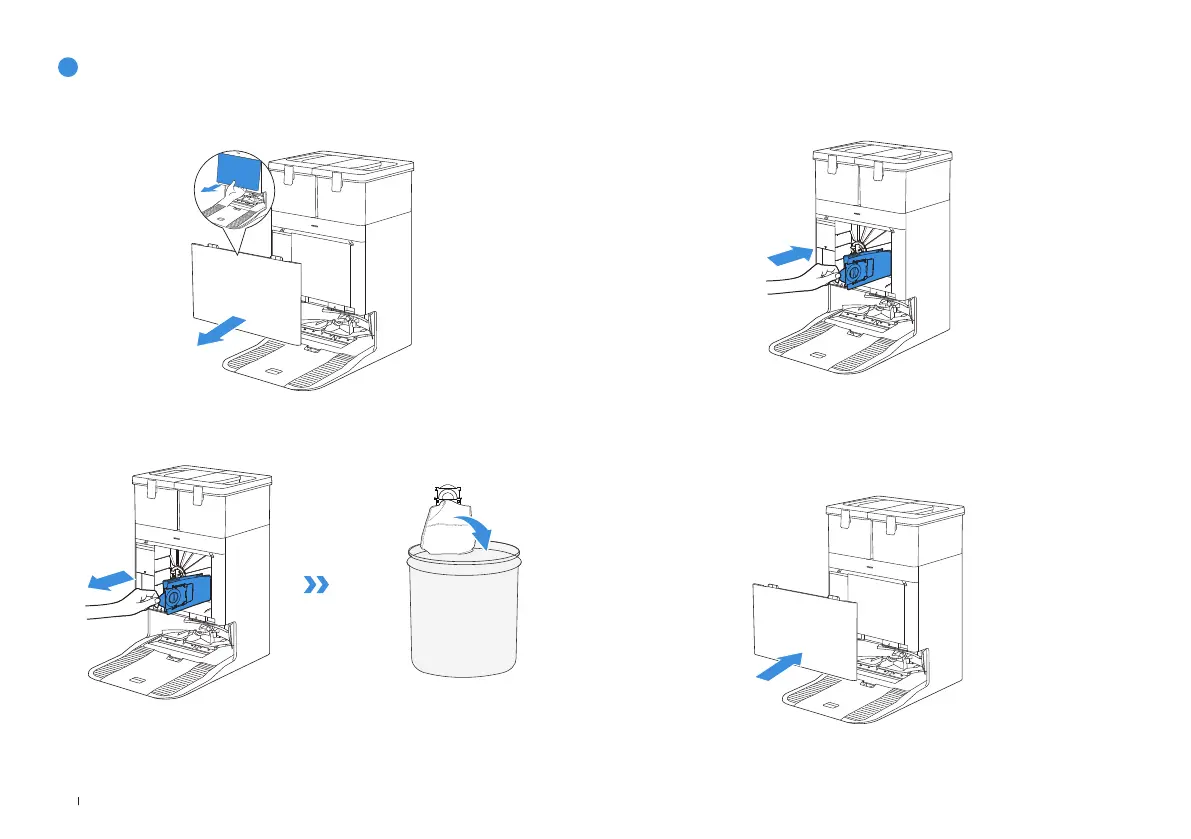 2.使い捨てダスバッを矢印の方向に取廃棄 4.カバーの上部チをスロ挿入下方向に押っか