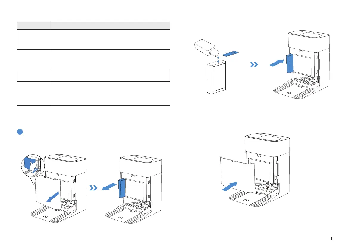 1. Retirez le couvercle du bac à poussière, retirez l'unité de solution de nettoyage