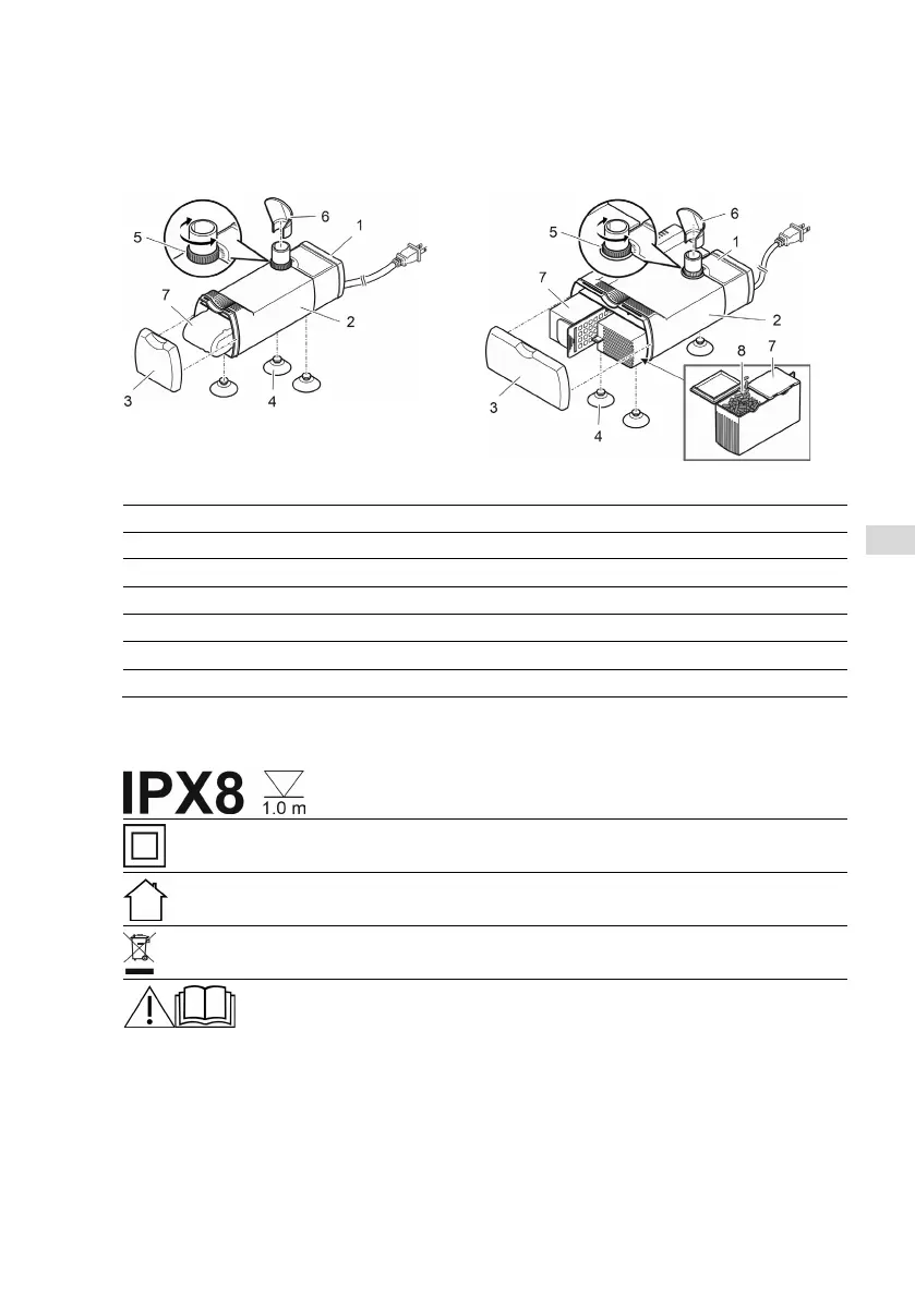 Apparaten är vattentät för permanent placering ned till 1 m djup.