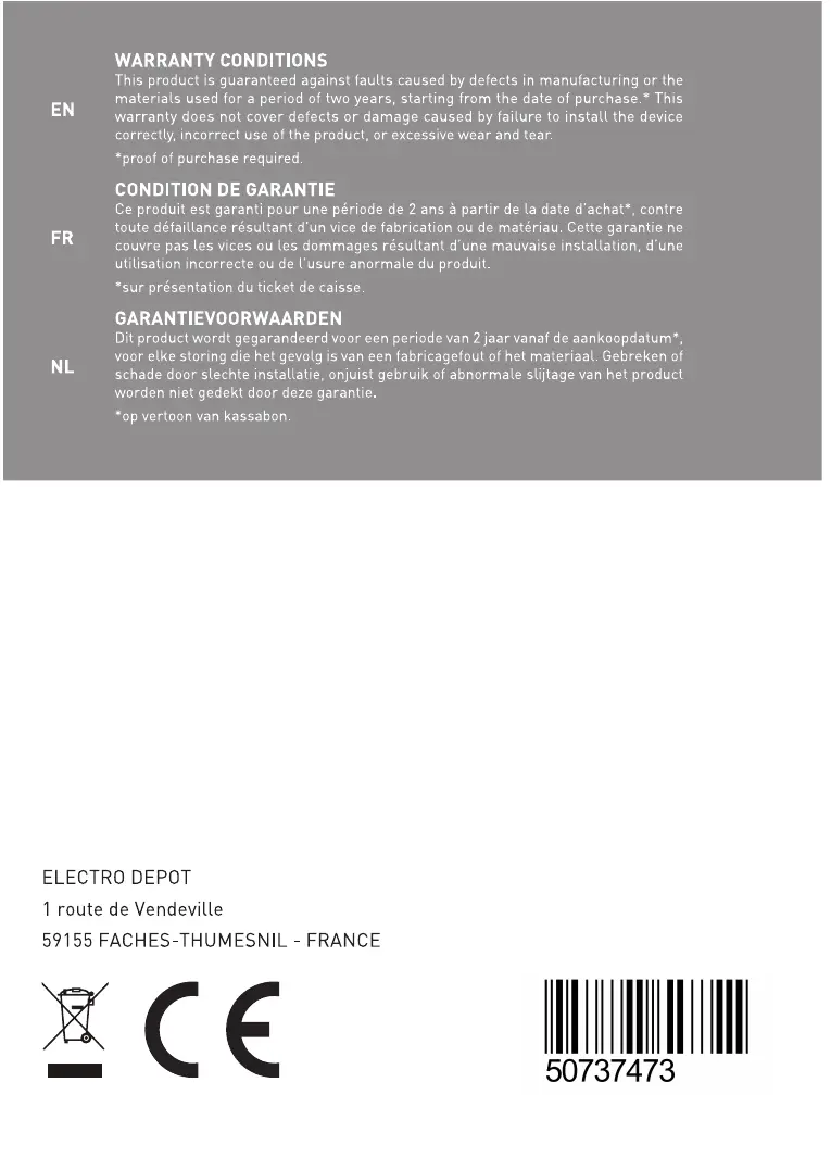 Hereby, ELECTRO DEPOT declares that this device is in compliance with the essential requirements and