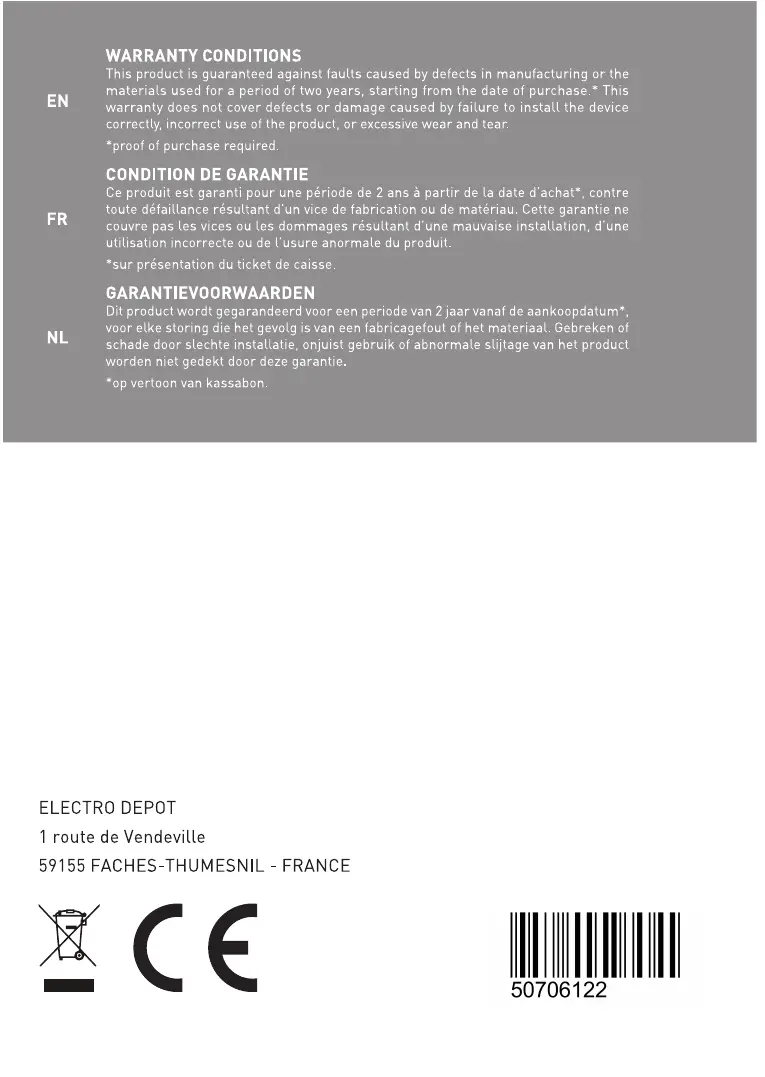 Hereby, ELECTRO DEPOT declares that this device is in compliance with the essential requirements and