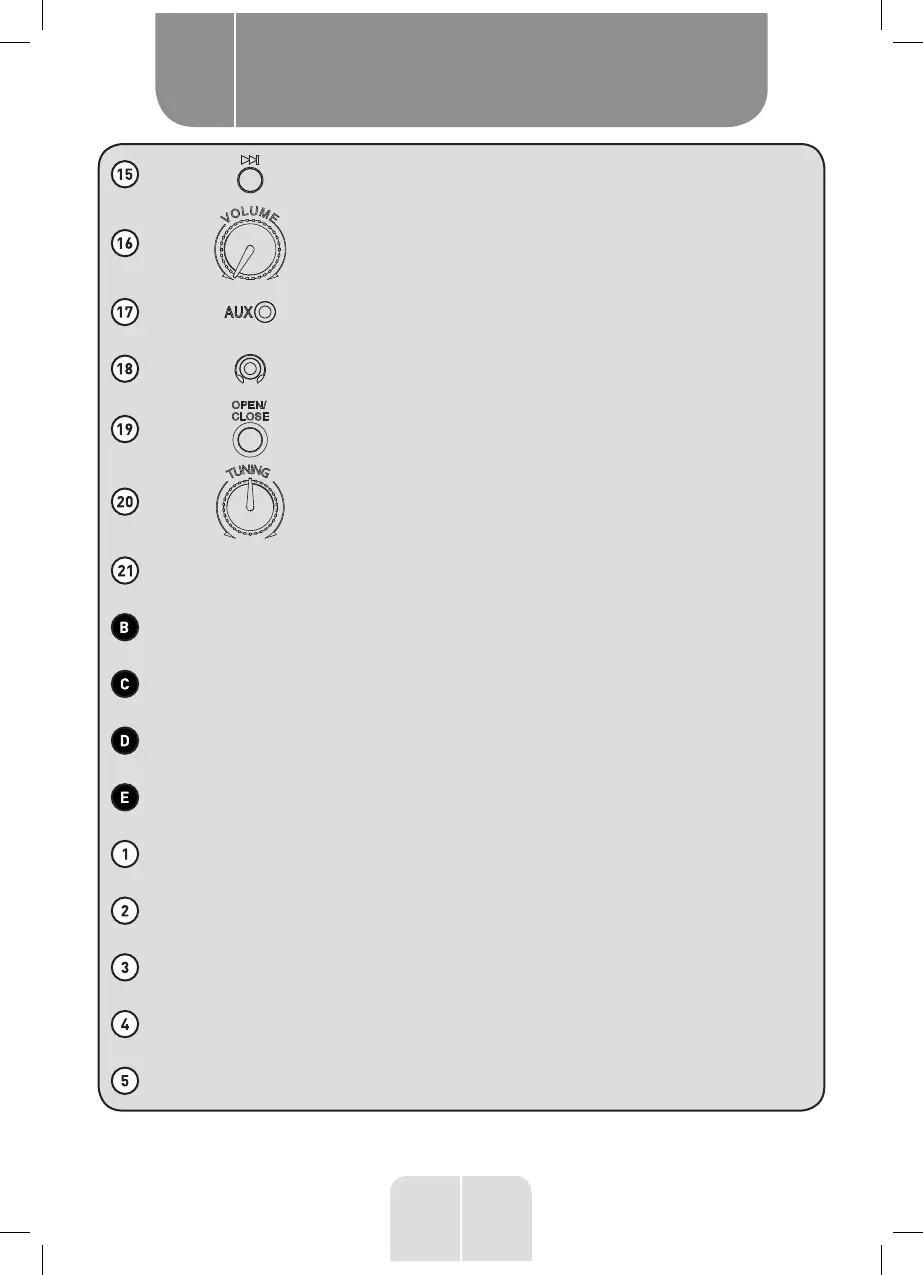 Socket to connect an AUX input cable (not provided)
