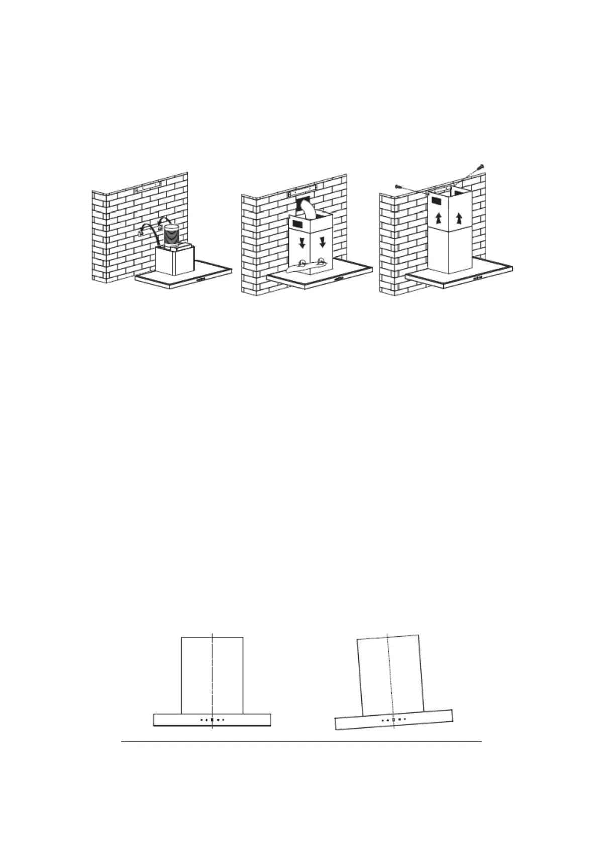 • Stellen Sie nach der Installation sicher, dass die Dunstabzugshaube waagerecht