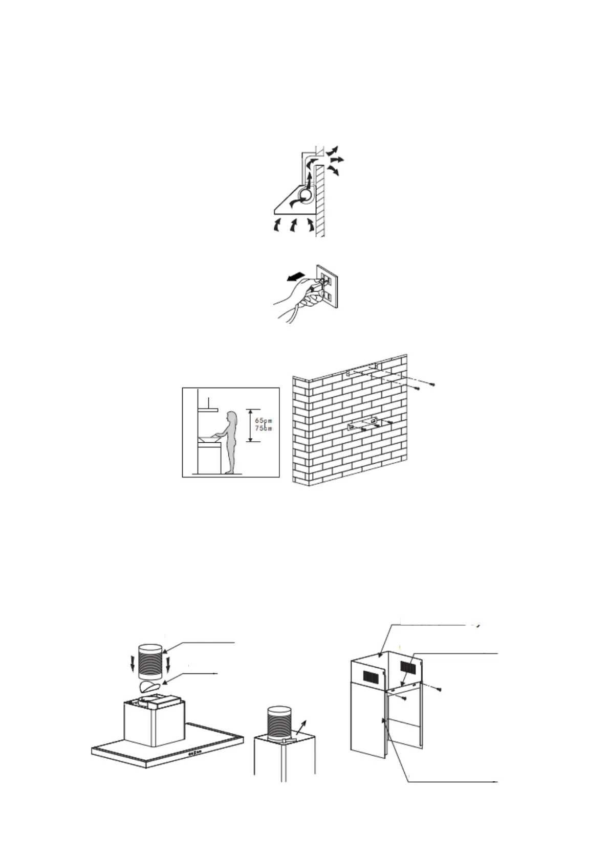 2. La campana extractora debe colocarse a una distancia de 65~75 cm por encima de la
