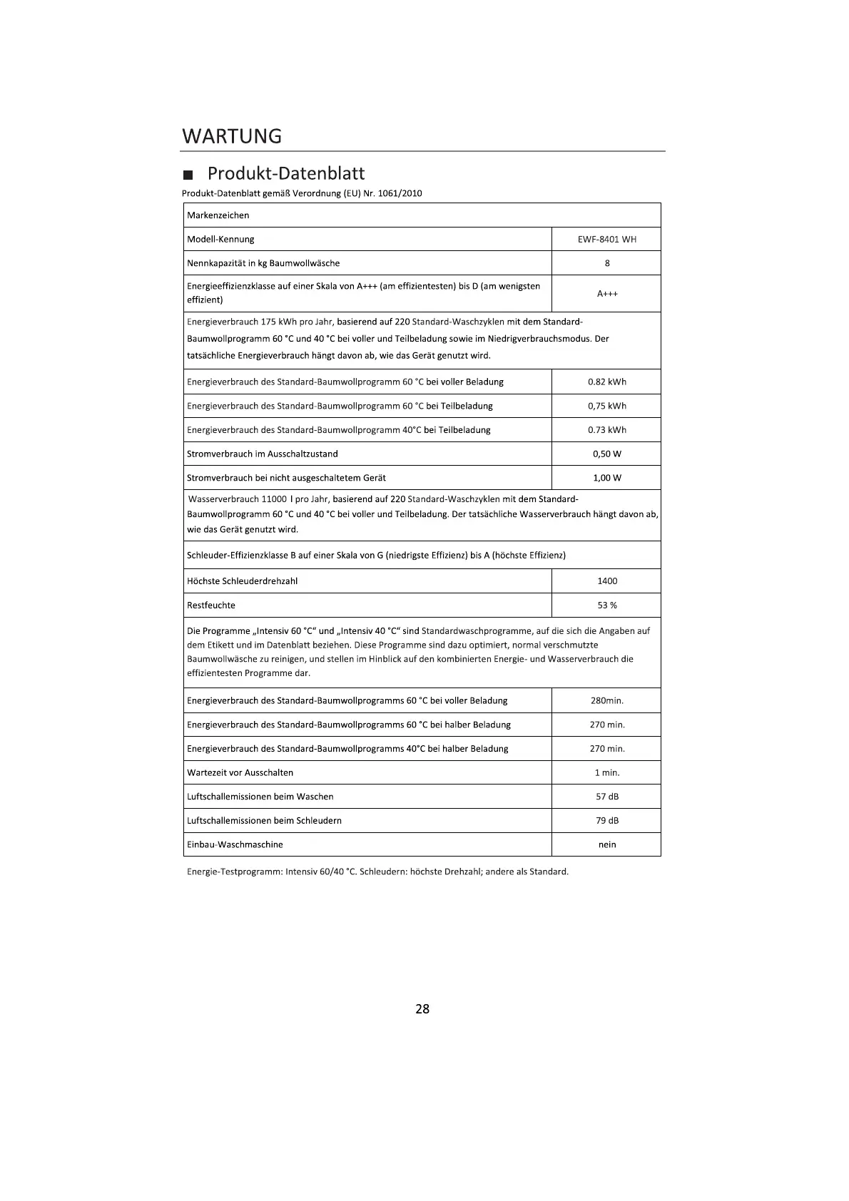 ModelEWF-8401 WH