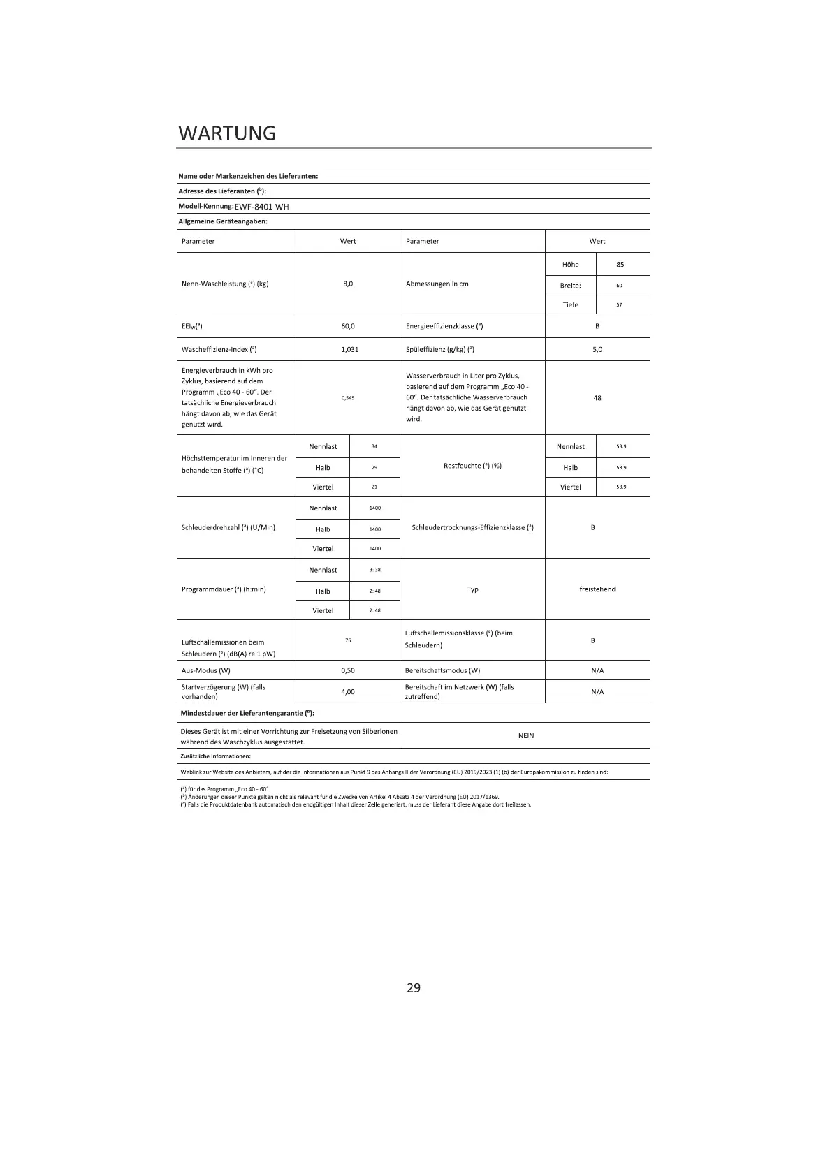 ModelEWF-8401 WH